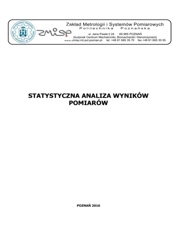 czujnik indukcyjny. Każdy z przedmiotów (wałeczków) wchodzących w skład próby zostanie jednokrotnie zmierzony bez zwracania. Opracowanie statystyczne obejmuje zadania opisane szczegółowo w instrukcji wykonane krok po kroku z wykorzystaniem arkusza kalkulacyjnego.
