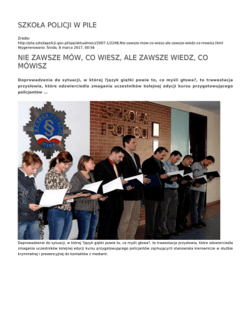 SZKOŁA POLICJI W PILE NIE ZAWSZE MÓW, CO WIESZ, ALE