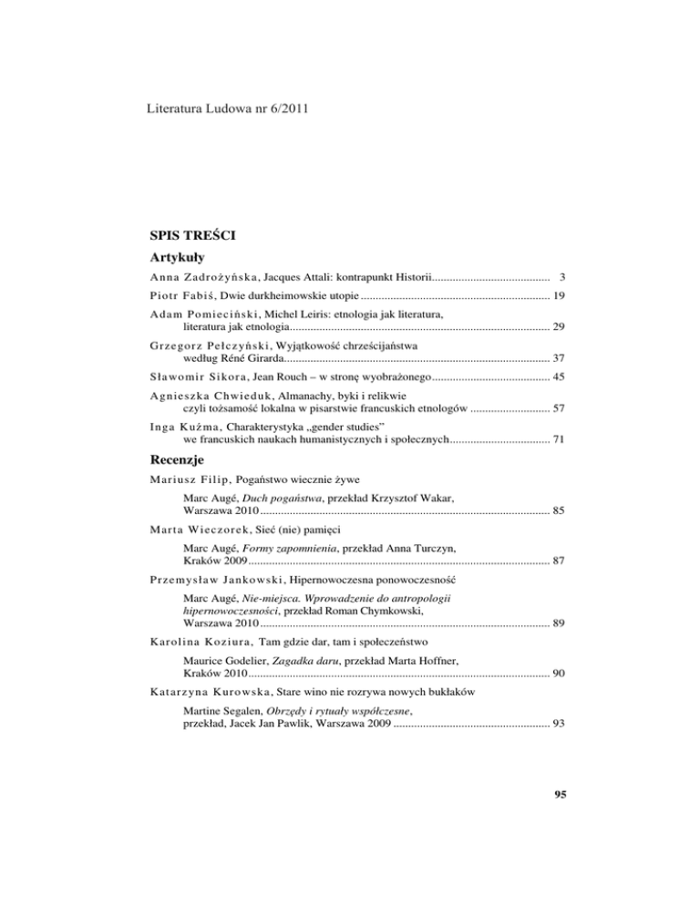 SPIS TREŚCI Artykuły Recenzje Literatura Ludowa nr 6/2011