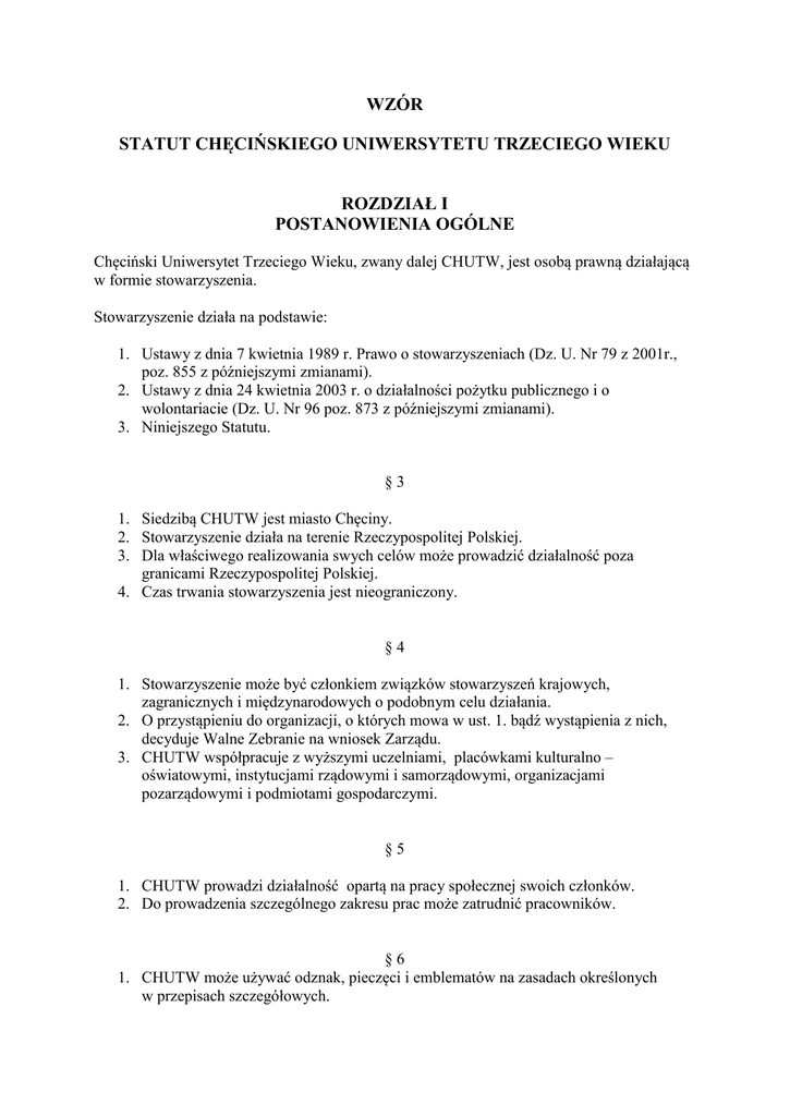 WZÓR STATUT CHĘCIŃSKIEGO UNIWERSYTETU TRZECIEGO
