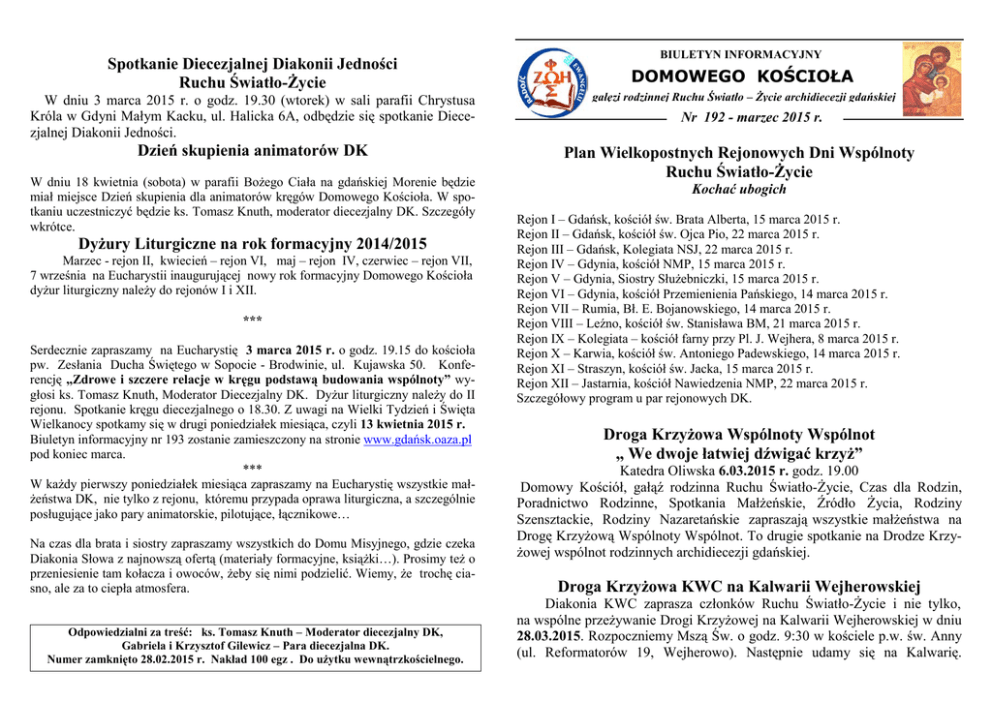 marzec 2015 r. - Ruch Światło-Życie Archidiecezji Gdańskiej