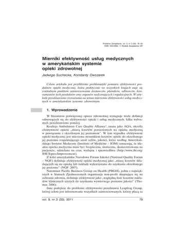 Mierniki efektywnoĂĘ usďug medycznych w amerykańskim systemie