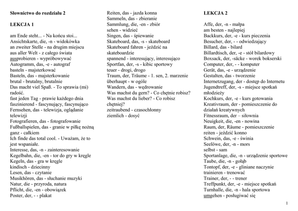 Słownictwo do rozdziału 2 LEKCJA 1 am Ende steht... - Na