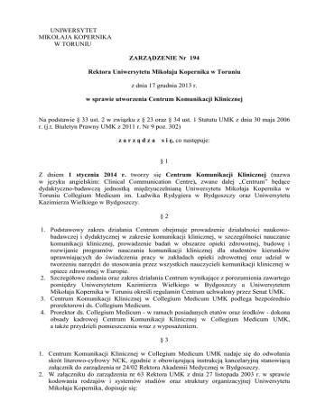 Zarządzenie CM UMK - Centrum Komunikacji Klinicznej