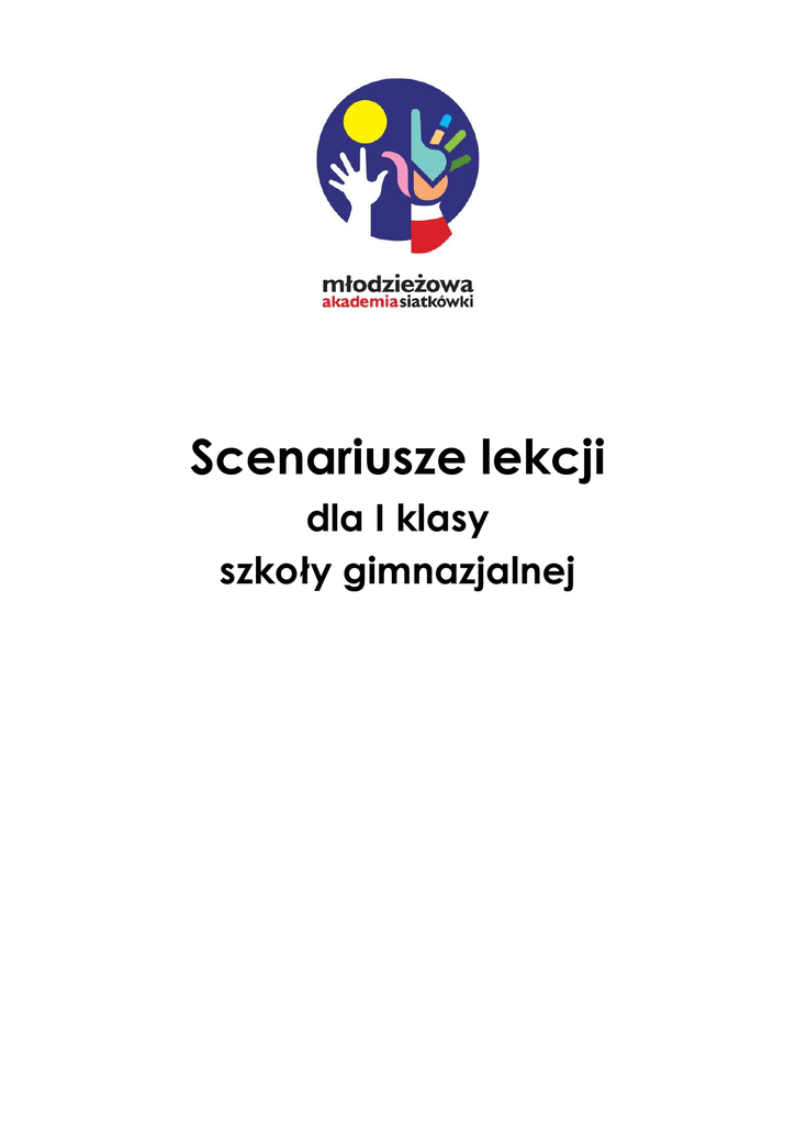 Scenariusze lekcji dla I klasy szkoły gimnazjalnej Organizacja gry – założenia taktyczne 1. Gra do wygranych 2 setów, wysokość siatki 215 cm dziewczęta i 235 cm chłopcy. 2. Gra systemem 6 na 6. Brak specjalizacji pozycji w grze. 3. Zagrywka tenisowa i szybująca z miejsca. 4. Przyjęcie w 5 zawodników ustawionych w kształcie litery W. 5. Wystawienie - przez zawodnika III strefy. 5. Atak - z piłek wysokich w strefach IV i II. 6. Asekuracja bloku mieszana. Asekuracja ataku z wystawy wysokiej w wariancie 3-2. 7. Blok - pojedynczy w strefach IV i II jako podstawowa forma. 8. Obrona - wariantem z czterema zawodnikami z tyłu (1-1-4), asekuracja wynikająca z czytania gry. Uwaga: Gra w systemie 6 na 6 - każdy z zawodników będących w linii ataku pełni rolę atakującego (jeśli znajduje się w strefie IV lub II) i wystawiającego (gdy znajduje się w strefie III). Ustawienie wyjściowe. Faza 1 Pozycje wyjściowe do bloku – w środku swoich stref. Pozycje wyjściowe w obronie : Strefa I – 4 m od siatki , 1,5 m od linii bocznej Strefa VI – 5 -6 m od siatki , w osi boiska Strefa V – 4 m od siatki, 1,5 m od linii bocznej Faza 2 Pozycje wyjściowe do przyjęcia zagrywki w 5 (kształt litery W). 3 zawodników ustawionych na 4-5 m od siatki. 2 dwóch około 1 m za nimi. Faza 1 Po wykonaniu zagrywki zawodnik strefy 1 wbiega na swoja pozycję wyjściową. Kontratak rozgrywany jest w ten sam sposób co akcja z przyjęcia. Faza 2 Po przyjęciu zagrywki zawodnik ustawiony w strefie III wystawia do strefy IV lub II. Faza 1 Blokowanie pojedyncze w strefie II. Obrona ,,patrz i reaguj” wariantem z czterema zawodnikami z tyłu (1-1-4) Asekuracja ataku z wystawy wysokiej w wariancie 3-2. Faza 2 Blokowanie pojedyncze w strefie II. Obrona ,,patrz i reaguj wariantem z czterema zawodnikami z tyłu (1-1-4) Faza 1 Asekuracja ataku z wystawy wysokiej w wariancie 3-2. Technika - kluczowe umiejętności uniwersalne dla wszystkich zawodników 1. Zagrywka – zagrywka tenisowa z miejsca w dwóch podstawowych kierunkach (prosta, przekątna). 2. Przyjęcie – przyjęcie piłki przed sobą sposobem dolnym i górnym, umiejętność zajęcia miejsca do przyjęcia zagrywki tak, aby przy przemieszczaniu w bok nie doszło do kolizji z partnerem, kształtowanie umiejętności oceny zachowania zagrywającego oraz lotu piłki od momentu wykonania zagrywki. Dogranie – technika dogrania wolnej piłki (na pozycję „0”) odbiciem dolnym oburącz z przodu i z boku tułowia. 3. Wystawa – wystawianie do stref IV i II wysokiej piłki o stałej trajektorii (wystawiona piłka opada około 0,5m przed antenką i około 1m od siatki), ustawienie wyjściowe wystawiającego - przy siatce w III strefie 4. Atak – utrwalanie nawyku stałej gotowości atakujących do wykonania akcji w ataku, umiejętność stosowania właściwego tempa dojścia do ataku z piłki sytuacyjnej, przebijanie piłki sytuacyjnej do strefy I lub II. Obrona – przyjmowanie postawy gotowości do obrony piłki (po uprzednim przemieszczeniu się), w momencie kontaktu dłoni atakującego z piłką, umiejętność obrony na poszczególnych pozycjach w strefach I, VI, V, IV i II; zasady współdziałania w układzie dwójkowym. 5. Blok przyjmowanie postawy gotowości do bloku (dłonie powyżej głowy, ramiona ułożone swobodnie przed sobą), umiejętność obserwacji toru lotu piłki, wystawiającego i atakujących zespołu przeciwnego; po wystawieniu piłki reagowanie w zależności od miejsca wyskoku zawodnika atakującego, ustawianie bloku naprzeciwko rozbiegu atakującego. Kluczowe umiejętności dla wprowadzanej specjalizacji pozycji w grze. 1. Rozgrywający – umiejętność wystawienia piłki wysoko do strefy IV, II i III, atak w drugim uderzeniu (kiwnięcie - sposobem górnym oburącz), wystawianie sytuacyjne oburącz górą i dołem z pola ataku i z pola obrony, asekuracja w strefie III (dogranie kiwniętej piłki w środek boiska), w obronie - przemieszczenie się z pozycji wyjściowej po wystawieniu piłki, w obronie - reakcja na ruch ręki atakującego. 2. Atakujący opanowanie tempa ataku z wystawy wysokiej w strefie IV, II i III - rozpoczęcie rozbiegu do ataku z wysokiej wystawy w momencie, gdy piłka zaczyna opadać, rozbieg do miejsca wyskoku ze stopniowym zwiększaniem szybkości i przyspieszeniem w ostatnich dwóch krokach, regulowanie kierunku uderzenia piłki poprzez zmianę kierunku rozbiegu (ruch ramienia prostopadły do linii barków) obrona w strefach I, VI, V oraz IV i II (dogranie wolnej piłki), ustawienie w obronie na skraju bloku (V i I) i reakcja na ruch ręki atakującego (I, VI, V oraz IV i II). Elementy piłki siatkowej w I klasie szkoły gimnazjalnej. Elementy gry Klasa I gimnazjum Gra Boisko 9 m x 9 m. Wysokość siatki 2,15 m (dz.) ; 2,35 m (ch.). Liczba grających 6 x 6. Postawa siatkarska Wysoka, średnia, niska. Sposoby przemieszczania Chód, bieg, krok dostawny, doskok, wypad, wyskok. Zagrywka Zagrywka tenisowa z miejsca. Przyjęcie Przyjęcie zagrywki tenisowej sposobem dolnym oburącz z przodu i z boku tułowia z amortyzacją ramionami. Przyjęcie w 5 zawodników ustawionych w kształcie litery W. Wystawienie Odbicie górne oburącz. Odbicie dolne oburącz. Wystawienie sposobem górnym i dolnym wysoko piłki o stałej trajektorii do stref IV i II (wystawiona piłka spada na linię boczną 1 m od siatki). Atak Atak z wystawy wysokiej ze stref IV, II i III. Blok Blok pojedynczy w strefach IV i II. Obrona Odbicia górne i dolne oburącz; odbicia górne i dolne jednorącz. Pad bokiem. Sekwencje gry uwzględniane w poszczególnych lekcjach L.P. Klasa I gimnazjum 1. PRZYJĘCIE - WYSTAWIENIE 2. BLOK - OBRONA 3. ZAGRYWKA - PRZYJĘCIĘ - WYSTAWIENIE 4. WYSTAWIENIE – ATAK 5. BLOK - OBRONA - ATAK 6. WYSTAWIENIE – ATAK - BLOK 7. PRZYJĘCIĘ - WYSTAWIENIE – ATAK 8. ZAGRYWKA - BLOK - OBRONA - ATAK 9. ZAGRYWKA - PRZYJĘCIĘ - WYSTAWIENIE 10. PRZYJĘCIĘ - WYSTAWIENIE 11. BLOK - OBRONA 12. OBRONA – WYSTAWIENI