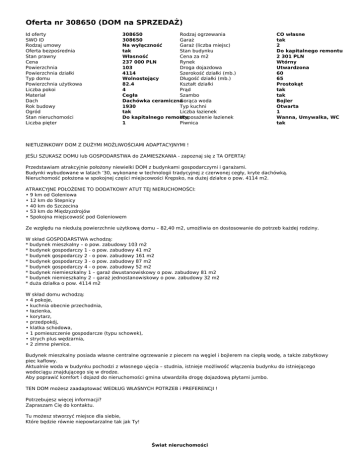 Oferta nr 308650 (DOM na SPRZEDAŻ)