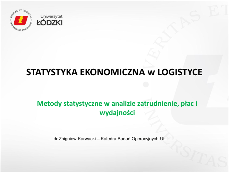 STATYSTYKA EKONOMICZNA w LOGISTYCE Metody statystyczne w analizie zatrudnienie, płac i wydajności dr Zbigniew Karwacki – Katedra Badań Operacyjnych UŁ Zatrudnienie, płace i wydajność w analizie ekonomicznej przedsiębiorstwa. Analizy ekonomiczne prowadzone w przedsiębiorstwie są wynikiem zapotrzebowania na informacje niezbędne do skutecznego zarządzania nim. Do obszarów tych analiz należy m.in. statystyczna analiza zatrudnienia, wydajności pracy i płac, która jest narzędziem służącym podniesieniu sprawności zarządzania jednostka gospodarczą. Zatrudnienie, czynniki je kształtujące i metody badania. 1 Podstawowym celem funkcjonowania przedsiębiorstwa w gospodarce rynkowej jest przynoszenie zysku, czyli dodawanie wartości i tym samym zwiększanie majątku właścicieli. Całość procesów zachodzących w przedsiębiorstwie można podzielić na dwie grupy: 1. Procesy fizyczne – fizyczny przepływ materiałów, półproduktów i produktów. 2. Procesy symboliczne – proces zbierania, przetwarzania i przepływu informacji, obiegu dokumentów i przepływu pieniądza. Procesy fizyczne są obsługiwane głównie przez pracowników produkcyjnych, a ich liczbę określa profil przedsiębiorstwa, stosowana technologia i organizacja pracy. Wpływ procesów symbolicznych na poziom i strukturę zatrudnienia jest bardziej skomplikowany niż procesów fizycznych, ponieważ nie tworzą one tak łatwo mierzalnej wartości dodanej. Zatrudnienie, czynniki je kształtujące i metody badania. 2 W celu uzyskania pełnego obrazu zmian zachodzących w przedsiębiorstwie w obszarze zatrudnienia konieczne jest przeprowadzenie kompleksowej analizy struktury, polegającej na obliczeniu i interpretacji takich parametrów statystycznych jak: miary tendencji centralnej, zróżnicowania i asymetrii. Bardzo istotnym elementem jest także analiza dynamiki wykorzystująca miary indeksowe oraz funkcję trendu. Metody badania poziomu i dynamiki płac 1 Polityka wynagrodzeń spełnia w przedsiębiorstwie dwie zasadnicze funkcje: 1. Rynkową – przyciąganie atrakcyjnych kandydatów do przedsiębiorstwa i zapobieganie ich odchodzeniu z pracy. Płaca rynkowa jest wyznaczana przez poziom popytu i podaży siły roboczej. Podwyższając poziom wynagrodzeń przedsiębiorstwo przyciąga większą liczbę zainteresowanych pracą. 2. Motywacyjną – jest ona istotna z punktu widzenia efektywności organizacji. Pracownicy oczekują, że ich praca znajdzie odzwierciedlenie w wynagrodzeniu. Metody badania poziomu i dynamiki płac 2 Celem analizy statystycznej płac w przedsiębiorstwie jest uzyskanie informacji o stanie i zmianach w poziomie wynagrodzeń oraz ich wpływie na inne wielkości ekonomiczne, przede wszystkim na wydajność pracy. W procesie analizy statystycznej płac konieczne jest przeprowadzenie: 1. Kompleksowej analizy ich struktury, 2. Zastosowanie metod indeksowych do opisu ich dynamiki. Indeksy agregatowe wielkości stosunkowych 1 Badanie dynamiki wielkości stosunkowych wymaga innego podejścia niż badanie dynamiki wielkości absolutnych. W przypadku przedsiębiorstwa wielkościami stosunkowymi są: 1. 2. 3. Średnia płaca – iloraz funduszu płac i liczby zatrudnionych, Wydajność pracy – stosunek wielkości produkcji do czasu pracy lub liczby zatrudnionych, Koszt jednostkowy – stosunek poniesionych kosztów do ilości produkcji. Wielkość stosunkową można zdefiniować jako wzajemny stosunek dwóch wielkości absolutnych, logicznie ze sobą powiązanych Indeksy agregatowe wielkości stosunkowych 2 Jeżeli wielkość stosunkowa dotyczy części zbiorowości, to możemy ją zapisać następująco: a a stąd a xb oraz b x x b W przypadku wielkości stosunkowej dotyczącej całej zbiorowości, zapis ma następującą postać: a X b gdzie X x , ale może być wyznaczony jako średnia arytmetyczna ważona z cząstkowych x : xb b X x b b Indeksy agregatowe wielkości stosunkowych 3 Wielkość X można również przedstawić jako ważoną średnią harmoniczną z cząstkowych wielkości x: X a 1 a 1 x x a a Wynika z tego, że na poziom wielkości stosunkowej x wpływa wielkość czynnika a oraz wielkość czynnika b. Natomiast poziom wielkości stosunkowej X dla całej zbiorowości jest wyznaczany nie tylko przez te wartości tych czynników, lecz także pod wpływem ich struktur: a a b b Indeksy agregatowe wielkości stosunkowych 4 W celu ustalenia dynamiki badanej wielkości stosunkowej można posłużyć się: • indeksami indywidualnymi – w przypadku części zbiorowości : xn ix xo gdzie: xn - poziom zjawiska w okresie badanym, xo - poziom zjawiska w okresie podstawowym. • indeksy agregatowe – w przypadku całej zbiorowości : Xn Ix Xo Tak obliczony indeks jest indeksem zespołowym i nosi nazwę agregatowego (zespołowego) indeksu wszechstronnego lub o zmiennej strukturze. Indeksy agregatowe wielkości stosunkowych 5 Indeks ten można zapisać w różnych, ale równoważnych postaciach: X n a n ao Ix : X o bn bo 1. Postać ogólna 2. Postać stosunku dwóch średnich arytmetycznych ważonych, gdzie wagami jest czynnik b xn bn xo bo Ix : bn bo 3. Postać stosunku dwóch średnich harmonicznych ważonych, gdzie wagami jest czynnik a Ix a a x n n n a : a x o o o Indeksy agregatowe wielkości stosunkowych 6 Zastosowanie każdej z tych formuł jest uzależnione jest od będących do dyspozycji informacji liczbowych: • jeżeli znane są poziomy czynnika a i czynnika b dla każdej części zbiorowości to stosuje się postać 1 • jeżeli znane są poziomy wielkości stosunkowej x i czynnika b stosuje się postać 2 • jeżeli znane są poziomy wielkości stosunkowej x i czynnika a stosuje się postać 3 Indeksy agregatowe wielkości stosunkowych 7 W celu określenia co kształtowało dynamikę wielkości stosunkowej należy wyznaczyć: • indeksy agregatowe o stałej strukturze czynnika b : – według formuły Paaschego s P x/b I x b x b x b a : b b x b x b n n o n n n