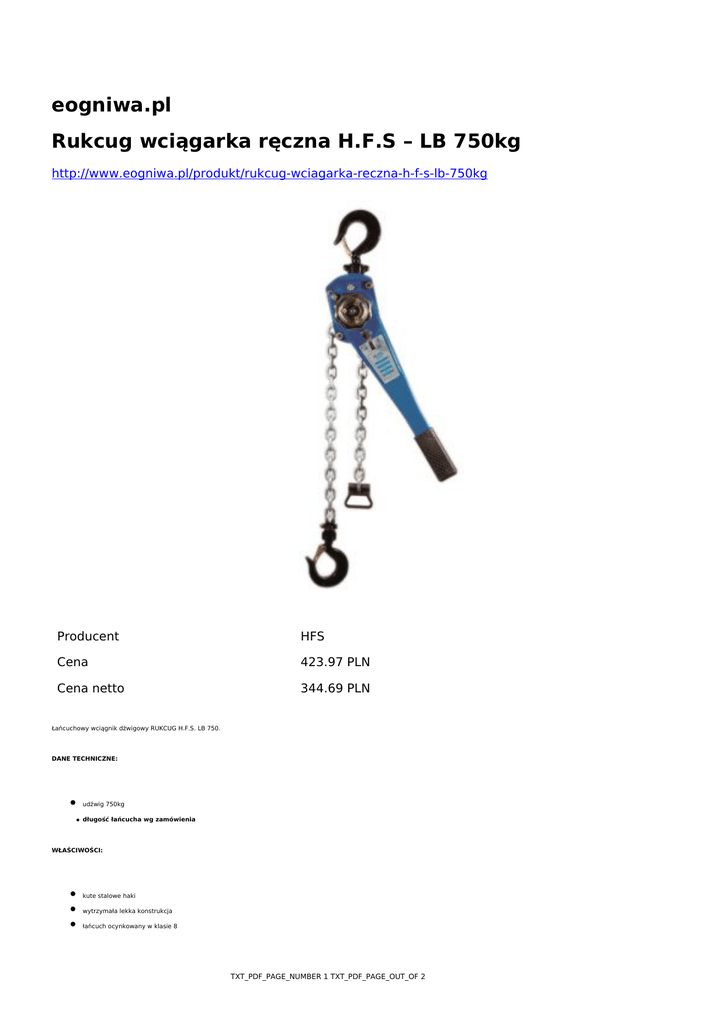 eogniwa.pl Rukcug wciągarka ręczna H.F.S – LB 750kg