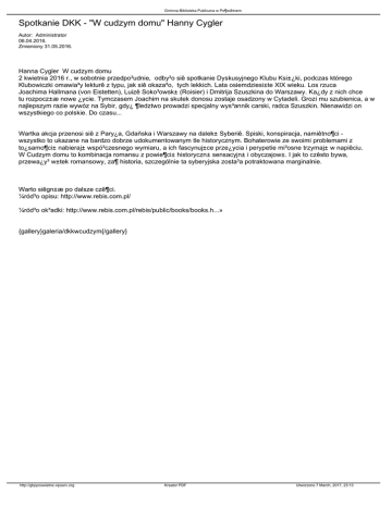 2 kwietnia 2016 r., w sobotnie przedpo³udnie, odby³o siê spotkanie Dyskusyjnego Klubu Ksi±¿ki, podczas którego