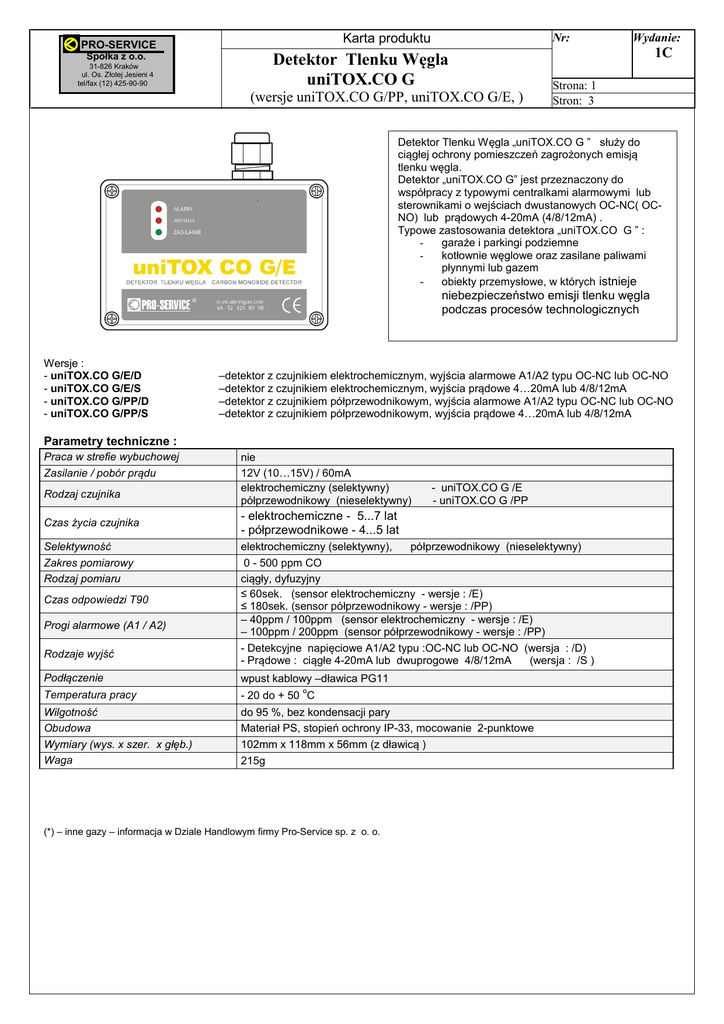 Karta produktu - uniTOX.CO G - Pro