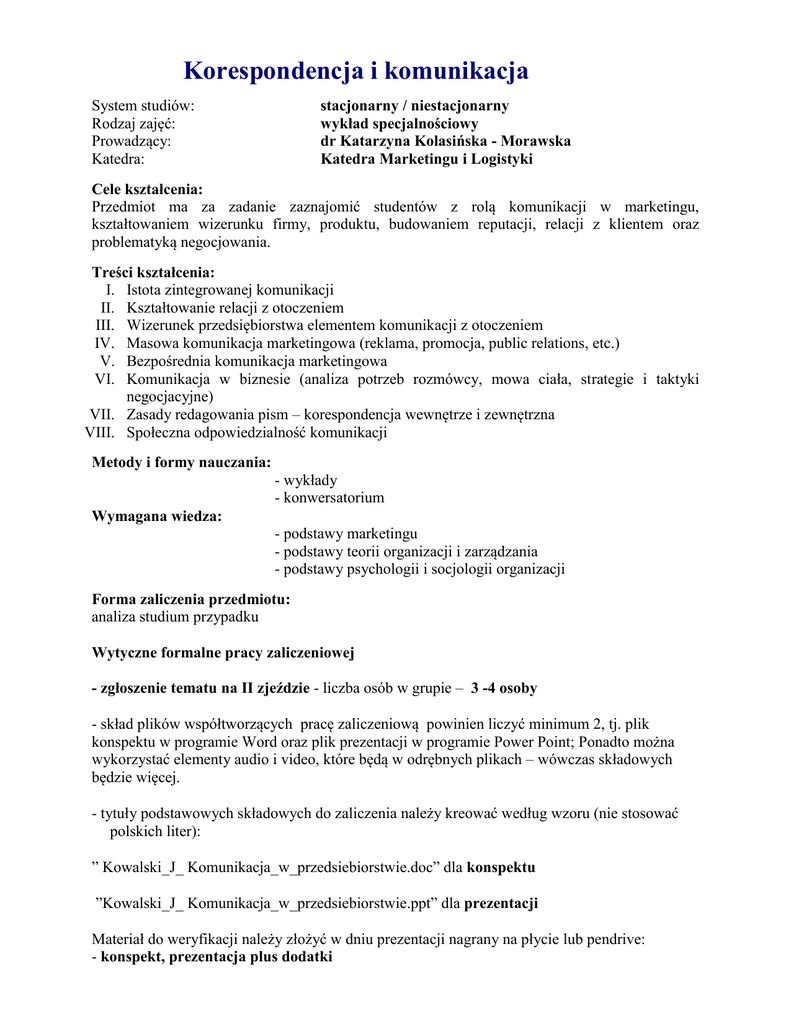 Korespondencja i komunikacja - dr Kolasińska