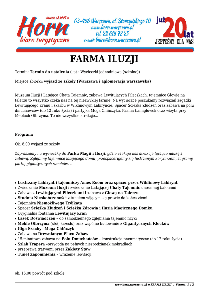 farma iluzji - Biuro Turystyczne HORN