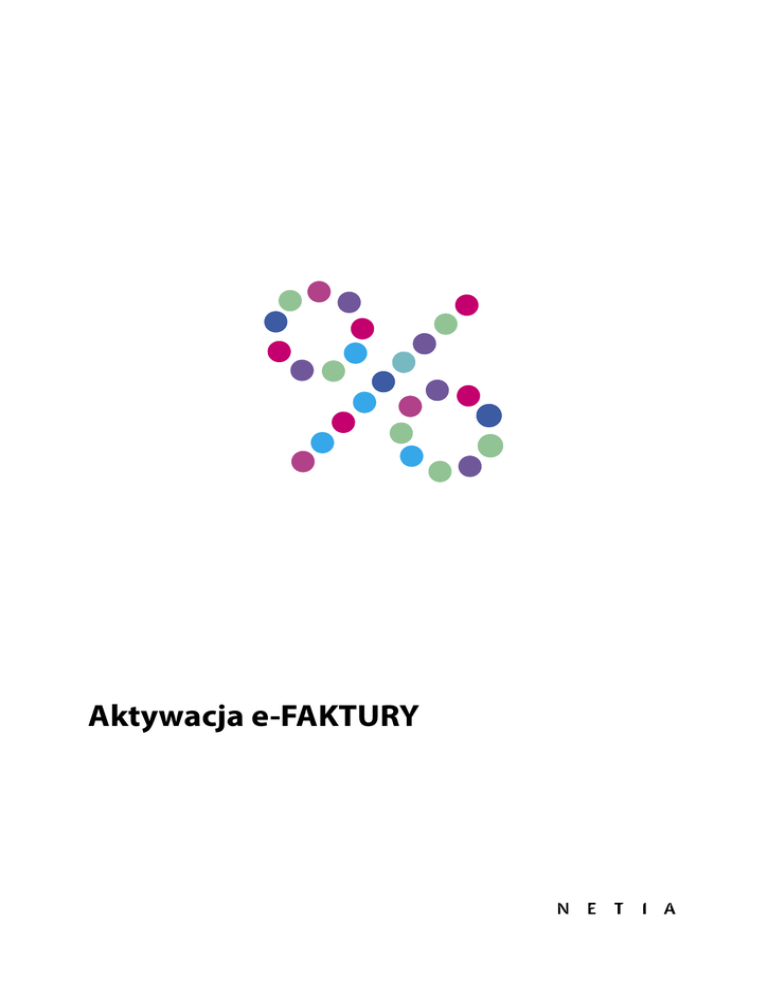 Aktywacja e-FAKTURY Jak aktywować elektroniczną fakturę (e-fakturę)? 1. Zaloguj się do serwisu Netia Online (netiaonline.pl). 2. Po zalogowaniu wybierz zakładkę Dokumenty i Umowy —> Aktywacja e-faktury. 3. W niebieskim oknie zaznacz opcję „e-faktura” oraz wprowadź swój adres e-mail. Sprawdź poprawność e-maila – na ten adres zostanie wysłany link uwierzytelniający. 4. N astępnie zaloguj się na swoje konto e-mail, otwórz otrzymanego od nas maila i kliknij w link uwierzytelniający. Uwaga! Jeśli nie otrzymałeś e-maila z linkiem, sprawdź, czy nie trafił on do folderu Spam. 5. Od tej pory możesz swobodnie przeglądać swoje faktury logując się do Netia Online (netiaonline.pl). 6.O wystawieniu każdej nowej faktury będziesz informowany na podany adres e-mail. Uwaga! e-faktura dostępna jest w formacie PDF. Do jej odczytania potrzebny jest program Adobe Reader. Bezpłatną wersję programu możesz pobrać na stronie: adobe.com/pl/products/acrobat/. Odpowiedzi na najczęstsze pytania dotyczące faktur i płatności znajdziesz pod adresem: netia.pl/oferta-dom/pomoc/faktury-platnosci.html. 2