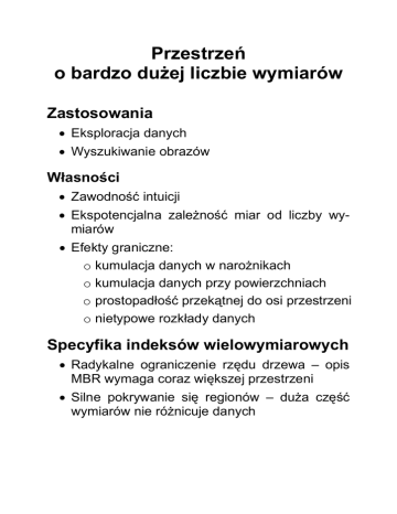 • Ekspotencjalna zależność miar od liczby wymiarów