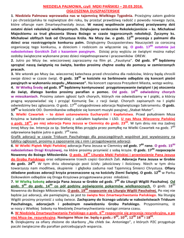 NIEDZIELA PALMOWA, czyli MĘKI PAOSKIEJ – 20.03.2016