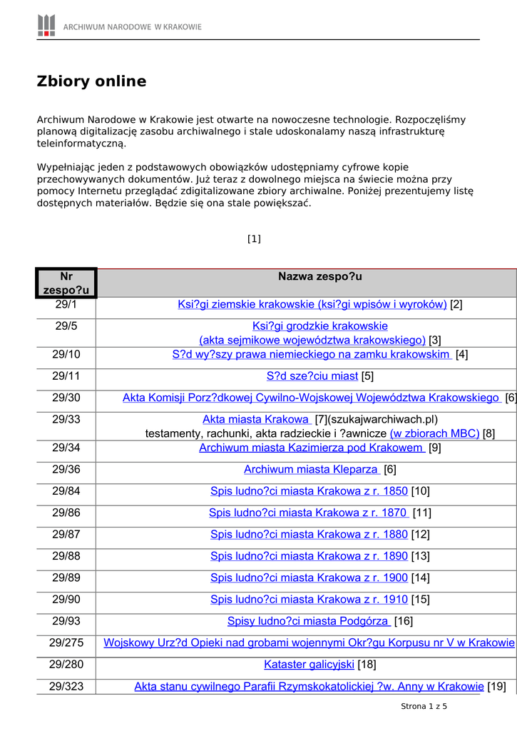 Zbiory online - Archiwum Narodowe w Krakowie.
