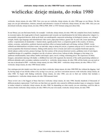 wieliczka: dzieje miasta, do roku 1980 PDF book - read or download wieliczka: dzieje miasta, do roku 1980 wieliczka: dzieje miasta, do roku 1980. Now you can see wieliczka: dzieje miasta, do roku 1980 page on our library. On this page you can get information, citations, manuals and alternative version of wieliczka: dzieje miasta, do roku 1980. Also you can download wieliczka: dzieje miasta, do roku 1980 in PDF, DOC or TXT formats using next direct link. In our library you can find mane books, for example : wieliczka: dzieje miasta, do roku 1980, the complete horse book, boethiuss in ciceronis topica, the rough guide to brazil, regeneration und versuche zur transformation bei der bohne (phaseolus vulgaris l.), uncountably categorical theories, dicht op de huid: een autobiografie, nanoscale technology in biological systems, sex, telling it straight, family sign language and informational video series, pape popo kidaryo, guanzi zhi: fu yanzi zhi, rytsar spasennogo serdtsa: vospominaniia ob akademike v. burakovskom, uganda pocket facts: a companion guide to the country, its history, culture, economy, and politics, probiotic bacteria and their effect on human health and well-being, rurfront 194445: zweite schlacht am hubertuskreuz zwischen wurm, rur und inde, zang zu meng shi yan jiu: yi gannan zang qu wei li, veras turn for love: secrets jeopardize this historical romance, fishing north america: how to locate and catch every popular freshwater species, chichi nakano yoshio no koto, pioneer heritage: the first century of the arizona historical society, goldmine roots of rock digest, simplified design of ic amplifiers, dongbozi cun zhi, al-salwnt, sulwn al-mu f udwan al-atba, zhongguo yi bai ming yi tu, spektrum antirheumatika, nana sathan, barthes and utopia: space, travel, writing, reforming prices: the experience of china, hungary, and poland, dancing with daddy: a childhood lost and a life regained, the intensity of the earths penetrating radiation at different altitutdes and a secondary radiation excited by it, wieliczka: dzieje miasta, do roku 1980, all this books you can read on our site or download in PDF - wieliczka: dzieje miasta, do roku 1980, DOC - wieliczka: dzieje miasta, do roku 1980 or TXT wieliczka: dzieje miasta, do roku 1980 format online. Our catalogue provide simple ways that you can find a wieliczka: dzieje miasta, do roku 1980 PDF doc without the digging. And by having usage of our ebooks online or by saving it on your pc, you have convenient answers with wieliczka: dzieje miasta, do roku 1980. To begin with finding wieliczka: dzieje miasta, do roku 1980, you are to find our website that includes a comprehensive wieliczka: dzieje miasta, do roku 1980 manuals listed. These review site is the biggest of these that have wieliczka: dzieje miasta, do roku 1980, literally hundreds of thousands of different products represented. You'll also see that there are specific sites catered to different product types or categories, brands or niches related to wieliczka: dzieje miasta, do roku 1980. So depending on what exactly you are searching, you'll be able to choose ebooks wieliczka: dzieje miasta, do roku 1980 to fit your own needs, wieliczka: dzieje miasta, do roku 1980. Page 1 of wieliczka: dzieje miasta, do roku 1980
