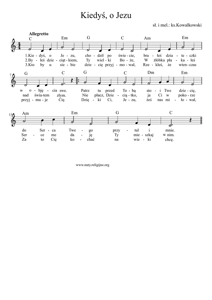 Kiedyś, o Jezu - Nuty Religijne