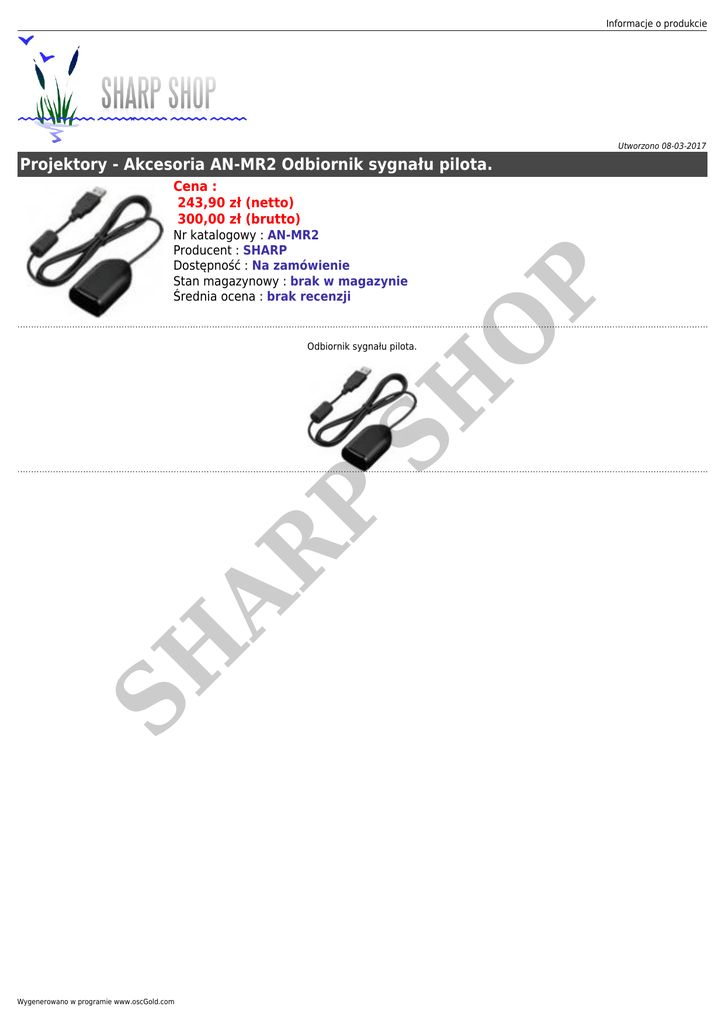 Informacje o produkcie Utworzono 08-03-2017 Projektory - Akcesoria AN-MR2 Odbiornik sygnału pilota. SH AR P SH Odbiornik sygnału pilota. O Nr katalogowy : AN-MR2 Producent : SHARP Dostępność : Na zamówienie Stan magazynowy : brak w magazynie Średnia ocena : brak recenzji P Cena : 243,90 zł (netto) 300,00 zł (brutto) Wygenerowano w programie www.oscGold.com