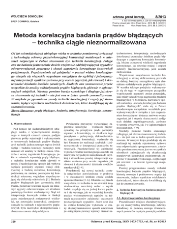 WOJCIECH SOKÓLSKI SPZP CORRPOL Gdańsk ochrona przed korozja 8/2013 s. 320-325 wersja polska, s. 226-331 wersja angielska Prosimy cytować jako: Ochr. Przed Koroz., 2013, 56, 8, (320-331) Please cite as: Ochr. Przed Koroz., 2013, 56, 8, (320-331) Metoda korelacyjna badania prądów błądzących – technika ciągle nieznormalizowana Od lat osiemdziesiątych ubiegłego wieku w technice pomiarowej związanej z technologią ochrony przeciwkorozyjnej konstrukcji metalowych w miastach rozpoczęto w Polsce stosowanie tzw. techniki korelacyjnej. Polega ona na badaniu jednocześnie dwóch wzajemnie oddziaływających sygnałów odwzorowujących przyczynę i skutek zagrożenia korozyjnego konstrukcji podziemnych. Przedstawienie tej zależności w postaci widma korelacyjnego okazała się niezwykle wygodnym narzędziem do szybkiej i jednoznacznej interpretacji wyników zarówno przy ocenie zagrożeń, jak również i skuteczności działania środków zaradczych. Znalazła ona zastosowanie przede wszystkim do analizy oddziaływania prądów błądzących, głównie w aglomeracjach miejskich. Niestety, pomimo bardzo szerokiego i długiego już okresu stosowania tej techniki – nie jest ona w żaden sposób znormalizowana. W artykule przypomniano zasady techniki korelacyjnej i reguły jej stosowania, będące wynikiem wieloletnich doświadczeń, które kwalifikują się do znormalizowania. Słowa kluczowe: prądy błądzące, badania, interferencje, korelacja, normalizacja 1. Wprowadzenie Pod koniec lat siedemdziesiątych ubiegłego wieku, z wykorzystaniem dostępnego w tamtych czasach sprzętu, podjęto pierwsze próby rejestracji i wykorzystania w terenowych badaniach prądów błądzących techniki jednoczesnego zapisu dwóch napięć i badania korelacji pomiędzy nimi zamiast ich analizy w funkcji czasu. Chodziło o ocenę zagrożenia korozyjnego, jakie w miastach wywołują prądy błądzące, a technika korelacyjna miała ujawnić w prosty i bezdyskusyjny sposób jak wpływa napięcie pomiędzy szynami trakcji elektrycznej a badaną metalową konstrukcją podziemną na zmianę potencjału tej konstrukcji mierzoną względem niepolaryzującej się elektrody odniesienia [1]. Badanie prądów błądzących jest czynnością dość trudną, ponieważ wszelkie dające się zmierzyć sygnały odwzorowujące ich działanie posiadają charakter stochastyczny. Stąd też interpretacja losowych zmian w funkcji czasu pojedynczych zmierzonych wielkości, np. potencjału konstrukcji, zarejestrowanych na taśmach z rejestratorów papierowych była niezwykle skomplikowana i obarczona zawsze dużym błędem. 320 Powiązanie przyczyny wywołującej zagrożenie korozyjne – wielkości proporcjonalnej do przepływu prądu pomiędzy szynami a konstrukcją, ze skutkiem tego przepływu – polaryzacją elektrochemiczną zagrożonej konstrukcji, wydawało się być kluczem do realizacji szybkich i jednoznacznych w interpretacji pomiarów terenowych. Przedstawienie tej zależności w postaci widma korelacyjnego okazało się niezwykle wygodnym narzędziem do szybkiej i stosunkowo prostej interpretacji wyników zarówno przy ocenie zagrożeń, jak również i skuteczności działania środków zaradczych [2–4]. Przydatność tej nowej techniki została natychmiast potwierdzona w praktyce i w stosunkowo krótkim czasie została upowszechniona [5–6]. Okazało się przede wszystkim, że technika ta ma również inny niedoceniony wcześniej walor – wynik badań znajduje się na jednej kartce papieru i nie wymaga, jak to wcześniej bywało, analizy wielometrowych zapisów na taśmach rejestratorów zależności czasowych poszczególnych sygnałów. Jeden rzut oka na widmo korelacyjne wykonane w znany eksperymentatorowi sposób umożliwia po osiągnięciu pewnej wprawy niemal na- tychmiastową interpretację zachodzących interferencji pomiędzy źródłem prądu błądzącego a zagrożoną korozyjnie konstrukcją. Można oszacować wielkość zagrożenia korozyjnego, jak również rodzaj i stopień ochrony przeciwkorozyjnej, jeśli została zastosowana. Współczesne uzupełnienie techniki korelacyjnej o stronę obliczeniową pozwala na dalszy, bardziej szczegółowy opis charakteru oddziaływania prądów błądzących. W wyniku takiego podejścia wykorzystuje się do tego w najprostszym przypadku współczynnik asymetrii zmian potencjału, jako miary szkodliwego zagrożenia prądami błądzącymi [7]. Metoda ta, nazwana w sposób naturalny „metodą korelacyjną badania prądów błądzących”, stała się w Polsce nieodzownym narzędziem wszelkich prac wykonywanych w związku z tym zagrożeniem korozyjnym i dotyczy zarówno oceny zagrożeń jak i stopnia skuteczności podjętych działań zapobiegawczych, zarówno w terenie otwartym, jak i w aglomeracjach miejskich [np. 7–9]. Niestety, pomimo bardzo szerokiego i długiego już okresu stosowania tej techniki – nie jest ona w żaden sposób znormalizowana. W naszym kraju produkuje się do realizacji tej metody rejestratory cyfrowe oraz odpowiednie oprogramowanie, a technika pomiaru stosowana jest we wszystkich ośrodkach zajmujących się eksploatacją metalowych konstrukcji podziemnych, zarówno w miastach (wodociągi, ciepłociągi) jak również i w terenie (gazociągi magistralne). Poniżej przypomniano zasady techniki korelacyjnej badania prądów błądzących, historię rozwoju i podstawowe reguły jej stosowania, będące wynikiem wieloletnich doświadczeń, które obecnie kwalifikują się już do znormalizowania. 2. Technika korelacyjna badania prądów błądzących 2.1. Rejestracja widma korelacyjnego Poszukiwanie miejsca charakteryzującego się maksymalną interferencją ochrony katodowej za pomocą szeregu równoczesnych pomiarów napięcia pomiędzy oddzia- Ochrona przed Korozją, ISSN 0473-7733, vol. 56, nr 8/2013 ływającymi konstrukcjami oraz potencjałem jednej z nich opisane zostało już przez A.W. Peabody’ego w I wydaniu jego ksi