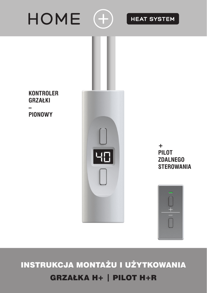 H E AT SYS T EM KONTROLER GRZAŁKI – PIONOWY + PILOT ZDALNEGO STEROWANIA INSTRUKCJA MONTAŻU I UŻYTKOWANIA GRZAŁKA H+ | PILOT H+R BEZPIECZEŃSTWO UŻYTKOWANIA 1. Grzałkę można podłączać wyłącznie do gniazda z bolcem uziemiającym. 2. Gniazdo elektryczne musi być zlokalizowane blisko urządzenia i musi być łatwo dostępne. 3. Montażu grzałki winien dokonać uprawniony instalator. 4. Grzejnik z zamocowaną grzałką elektryczną nie może być zainstalowany w odległości mniejszej niż 60 cm od gabarytów wanny (nigdy nad wanną) umywalki lub natrysku.. 5. W instalacji sterownika podłączonego na stałe (hard wire) musi być zapewnione urządzenie odłączające sterownik od sieci zasilającej. Urządzenie takie musi odłączać sieć na 2 biegunach, z separacją zestyków równą co najmniej 3 mm. 6. Z niniejszego urządzenia mogą korzystać dzieci powyżej 8 roku życia i osoby ograniczonych zdolnościach fizycznych, zmysłowych bądź umysłowych, jak również osoby nie posiadające doświadczenia lub znajomości urządzenia, jeśli znajdują się one pod nadzorem innych osób lub jeśli zostały pouczone na temat bezpiecznego sposobu użycia urządzenia oraz zdają sobie sprawę ze związanym z nim zagrożeń. Dzieci nie powinny bawić się urządzeniem. 7. Prace związane z czyszczeniem i konserwacją nie mogą być wykonywane przez dzieci, jeśli nie są one nadzorowane. 8. Przed przystąpieniem do konserwacji obudowy należy wyjąć wtyczkę z gniazda elektrycznego. Bezwzględnie unikać zamoczenia obudowy. 9. W przypadku posiadania zaworów na grzejniku, podczas pracy z grzałką, grzejnik nie może być zamknięty jednocze śnie na zasilaniu i powrocie. (temperaturowy wzrost objętości wody). UWAGA: aby zapobiec niebezpieczeństwu pożaru i porażenia prądem elektrycznym należy chronić obudowę grzałki przed zalaniem. Niniejszy sprzęt nie jest przeznaczony do użytkowania przez osoby (w tym dzieci) o ograniczonej zdolności fizycznej, czuciowej lub psychicznej lub osoby nie mające doświadczenia lub znajomości sprzętu, chyba, że odbywa się to pod nadzorem lub zgodnie z instrukcją użytkowania sprzętu, przekazaną przez osoby odpowiadające za ich bezpieczeństwo. Należy zwracać uwagę na dzieci, aby nie bawiły się sprzętem. Znak wykrzyknika na trójkątnym polu oznacza ważne dla użytkownika informacje. UWAGA: Symbol błyskawicy ostrzega przed niebezpiecznym napięciem wewnątrz urządzenia. UWAGA: aby ograniczyć niebezpieczeństwo porażenia prądem elektrycznym, nie należy zdejmować obudowy (ani jej tylnej pokrywy). Wewnątrz urządzenia nie ma części nadających się do naprawy w celu dokonania naprawy produkt przekazać producentowi przez punkt nabycia wyrobu WARUNKI GWARANCJI: Producent udziela gwarancji na okres 24 miesięcy od daty sprzedaży, jednak nie dłużej niż 36 miesięcy od daty produkcji grzałki. Ujawnione w tym okresie wady wynikłe z winy producenta zostaną bezpłatnie usunięte lub egzemplarz zostanie wymieniony na nowy, o tych samych parametrach. Termin rozpatrywania reklamacji do 14-tu dni od daty dostarczenia do producenta. Gwarancja nie obejmuje: 1. Użytkowania produktu niezgodnie z załączonymi instrukcjami. 2. Wszelkich widocznych uszkodzeń elementu grzejnego i programatora wynikających z niewłaściwego użytkowania. Uszkodzenie plomb producenta powoduje utratę praw gwarancyjnych. W przypadku obiektywnego braku możliwości naprawy wyrobu lub jego wymiany, producent zastrzega sobie prawo zwrotu Nabywcy równowartości zakupionego wyrobu. KARTA GWARANCYJNA Nr serii: Data sprzedaży: Pieczęć punktu sprzedaży , podpis ul. Domagały 1, 30-841 Kraków, POLAND Uwaga: Kartę gwarancyjną należy czytelnie wypełnić w punkcie sprzedaży. Wszelkie poprawki na karcie gwarancyjnej powodują utratę praw gwarancyjnych. Tel/fax: +48 12 653 53 41, MADE IN EU www.enix.pl Instrukcja montażu: element grzejny + grzałka (pionowa) H+ Sprawdź instrukcję wideo użytkowania grzałki na stronie: www.homeplus-system.com Możliwości montażu Zawartość zestawu >60cm >60cm Element grzejny UWAGA! Nigdy nie zdejmuj sterownika z elementu grzejnego, gdy układ jest pod napięciem. Podłączenie w ścianie ON/OFF Przełącznik Faza Uziemienie Neutralny 40 mm Podłączenie z kablem bez wtyczki (hard wire) 230 V Grzałka Podłączenie z wtyczką i kablem spiralnym Opcja systemu: Kolorowe nakładki na grzałkę. Kształty O/D Plastikowe nakładki finalnego wykończenia przy ścianie Klucz imbusowy + _ Uchwyt pilota na scianę Pilot zdalnego sterowania Montaż w grzejnikach: ogrzewanie elektryczne Montaż w grzejnikach: ogrzewanie C.O. Instalacja – szczegóły 1 2 S24 230 V S24 3 UWAGA! Nigdy nie zdejmuj sterownika z elementu grzejnego, gdy układ jest pod napięciem. 230 V 4 Grzejniki elektryczne S22 5 6A 3-5 cm S22 7 Wykończenie montażu przy ścianie Grzejniki C.O. Element (D) należy dociąć do odpowiedniej długości 8 6B ? ? ? Dotnij moduły na odpowiednią długość 9 W instalacji sterownika podłączonego na stałe (hard wire) musi być zapewnione urządzenie odłączające sterownik od sieci zasilającej. Urządzenie takie musi odłączać sieć na 2 biegunach. 230 V Podłączenie w ścianie Podłączenie z wtyczką i kablem spiralnym ON/OFF Przełącznik Faza Uziemienie Neutralny Podłączenie z kablem bez wtyczki (hard wire) INSTRUKCJA OBSŁUGI: Sterownik grzałki (z opcją zdalnego sterowania pilotem) VIDEO instrukcji dostępne na www.homeplus-system.com Sterownik grzałki Podłącz grzałkę do kaloryfera zgodnie z zaleceniami producenta. Dioda LED (Aktywność) + Okienko wyświetlacza – Pilot sterowania Aby aktywować pilota naciśnij przycisk parowania. Zamontuj uchwyt pilota w dogodnym miejscu. Uwaga! W przypadku wyboru temperatury otoczenia, pilot jest jednocześnie czujnikiem temperatury Tył pilota dioda LED: element grzejny działa Sterownik grzałki Pilot Przycisk parowania pilota z grzałką Magnes 