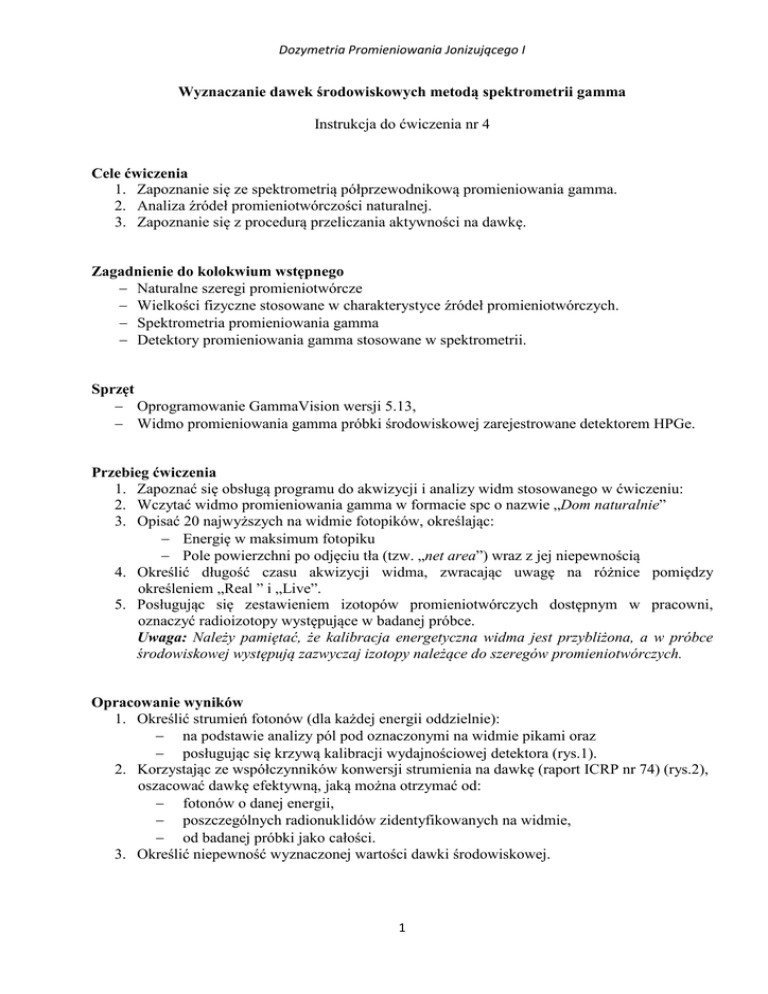 Wyznaczanie dawek środowiskowych metodą spektrometrii gamma