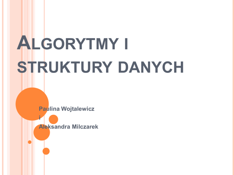 ALGORYTMY I STRUKTURY DANYCH Paulina Wojtalewicz i Aleksandra Milczarek TEMATY, KTÓRYMI SIĘ ZAJMIEMY, TO : Wyszukiwanie palindromów Szyfr Cezara Szyfry przestawieniowe Dodawanie dużych liczb Mnożenie dużych liczb, Ciekawi?- (założymy się, że tak), wszystkie te tematy przybliżymy Wam za chwilę Wyszukiwanie palindromów WYSZUKIWANIE PALINDROMÓW Problem W łańcuchu s znaleźć wszystkie palindromy o długości większej od 1. Przez palindrom (ang. palindrome) rozumiemy łańcuch znakowy s, który czyta się tak samo w obu kierunkach. Przykład: ABBCBBA – jest palindromem ABBCABA – nie jest palindromem Palindromy pojawiają się w genetyce (łańcuchy DNA, RNA), w tekstach, muzyce, matematyce, geometrii, fizyce itd. Stąd duże zainteresowanie informatyków w efektywnych algorytmach ich znajdowania. W badaniach genetycznych często szuka się tzw. przybliżonych palindromów (ang. aproximate palindromes), tzn. palindromów, w których do k-znaków może być błędnych, czyli nie pasujących do dokładnego palindromu (ang. exact palindrome). Takie palindromy występują w łańcuchach DNA, w których wystąpiły różnego rodzaju błędy genetyczne. Problemem palindromów przybliżonych nie zajmujemy się w tym opracowaniu. WYSZUKIWANIE PALINDROMÓW Wprowadźmy symbol sR, który oznacza łańcuch znakowy o odwróconej kolejności znaków w stosunku do łańcucha s. Przykład: s = ABCD sR = DCBA Łańcuch s jest palindromem, jeśli da się rozłożyć na dwa podłańcuchy w i wR wg poniższego schematu: s = wwR – palindrom parzysty (ang. even palindrome), lub s = wXwR – palindrom nieparzysty (ang. odd palindrome), gdzie X jest dowolnym symbolem alfabetu. WYSZUKIWANIE PALIDROMÓW Rozwiązanie nr 1 Pierwszy algorytm wyszukiwania palindromów jest algorytmem naiwnym. Rozkłada on dany łańcuch znakowy s na wszystkie możliwe podłańcuchy p o długości nie mniejszej niż 2 znaki i sprawdza następnie, czy dadzą się przedstawić w postaci wwR lub wXwR. Sprawdzenie polega na porównywaniu znaków od początku i od końca podłańcucha. W tym celu wykorzystuje się dwa indeksy. Jeden z nich ustawia się na pierwszym znaku podłańcucha p, a drugi na ostatnim. Następnie porównujemy wskazywane przez te indeksy znaki podłańcucha p. Jeśli znaki są różne, to podłańcuch p nie jest palindromem. Jeśli porównywane znaki są równe, to indeksy przesuwamy – lewy w prawo, a prawy w lewo. Jeśli indeksy się miną, to zachodzi jedna z dwóch równości: WYSZUKIWANIE PALIDROMÓW p = wwR, lub p = wXwR W takim przypadku p jest palindromem. Wyszukanie wszystkich palindromów zawartych w łańcuchu s proponowaną metodą posiada sześcienną klasę złożoności obliczeniowej O(n3), gdzie n jest długością łańcucha s. WYSZUKIWANIE PALIDROMÓW Algorytm naiwny wyszukiwania palindromów Wejście: s – łańcuch tekstowy.Wyjście: Wszystkie palindromy zawarte w łańcuchu s. Elementy pomocnicze: i,j – indeksy znaków w łańcuchu s, i,j € N Nn –długość łańcucha s, n € N NiP –prawy indeks, iP € N NiL –lewy indeks, iL € N WYSZUKIWANIE PALINDROMÓW Lista kroków Szyfr Cezara SZYFR CEZARA Problem Opracować algorytm szyfrujący i deszyfrujący dla szyfru Cezara Szyfrowanie tekstów (ang. text encryption) ma na celu ukrycie ważnych informacji przed dostępem do nich osób niepowołanych. Historia kodów szyfrujących sięga czasów starożytnych. Już tysiące lat temu egipscy kapłani stosowali specjalny system hieroglifów do szyfrowania różnych tajnych wiadomości. Szyfr Cezara (ang. Ceasar's Code lub Ceasar's Cipher) jest bardzo prostym szyfrem podstawieniowym (ang. substitution cipher). Szyfry podstawieniowe polegają na zastępowaniu znaków tekstu jawnego (ang. plaintext) innymi znakami przez co zawarta w tekście informacja staje się nieczytelna dla osób niewtajemniczonych. Współcześnie szyfrowanie stanowi jedną z najważniejszych dziedzin informatyki – to dzięki niej stał się możliwy handel w Internecie, funkcjonują banki ze zdalnym dostępem do kont, powstał podpis elektroniczny oraz bezpieczne łącza transmisji danych. Przykładów zastosowania jest bez liku i dokładne omówienie tej dziedziny wiedzy leży daleko poza możliwościami tego artykułu. SZYFR CEZARA Szyfr Cezara został nazwany na cześć rzymskiego imperatora Juliusza Cezara, który stosował ten sposób szyfrowania do przekazywania informacji o znaczeniu wojskowym. Szyfr polega na zastępowaniu liter alfabetu A...Z literami leżącymi o trzy pozycje dalej w alfabecie: Ostatnie trzy znaki X, Y i Z nie posiadają następników w alfabecie przesuniętych o trzy pozycje. Dlatego umawiamy się, iż alfabet "zawija się" i za literką Z następuje znów litera A. Teraz bez problemu znajdziemy następniki X → A, Y → B i Z → C. SZYFR CEZARA Przykład: Zaszyfrować zdanie: NIEPRZYJACIEL JEST BARDZO BLISKO. Poszczególne literki tekstu jawnego zastępujemy literkami szyfru Cezara zgodnie z powyższą tabelką kodu. Spacje oraz inne znaki nie będące literami pozostawiamy bez zmian: NIEPRZYJACIEL JEST BARDZO BLISKO QLHSUCBMDFLHO MHVW EDUGCR EOLVNR Deszyfrowanie tekstu zaszyfrowanego kodem Cezara polega na wykonywaniu operacji odwrotnych. Każdą literę kodu zamieniamy na literę leżącą o trzy pozycje wcześniej w alfabecie. SZYFR CEZARA Podobnie jak poprzednio trzy pierwsze znaki szyfru Cezara nie posiadają bezpośrednich odpowiedników liter leżących o trzy pozycje wcześniej, ponieważ alfabet rozpoczyna się dopiera od pozycji literki D. Rozwiązaniem jest ponowne "zawinięcie" alfabetu tak, aby przed literą A znalazły się trzy ostatnie literki X, Y i Z. Do wyznaczania kodu literek przy szyfrowaniu i deszyfrowaniu posłużymy się operacjami modulo. Operacja modulo jest resztą z dzielenia danej liczby przez moduł. Wynik jest zawsze mniejszy od modułu. U nas moduł będzie równy 26, ponieważ tyle mamy liter alfabetu. Jeśli c jest kodem ASCII dużej lit