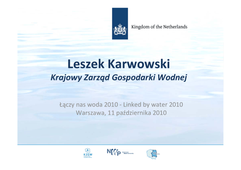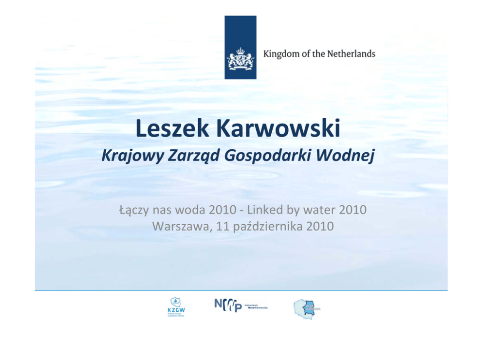 Leszek Karwowski Krajowy Zarząd Gospodarki Wodnej Łączy nas woda 2010 ‐ Linked by water 2010 Warszawa, 11 października 2010 Projekt Polityki Wodnej Państwa 2030 ze szczególnym uwzględnieniem implementacji Dyrektywy Powodziowej (2007/60/EC) Leszek Karwowski Krajowy Zarząd Gospodarki Wodnej Zakres prezentacji 1. 2. 3. 4. 5. 6. Projekt Polityki Wodnej Państwa do roku 2030 Główne problemy ochrony przeciwpowodziowej w Polsce Główne przyczyny niskiej skuteczności systemu ochrony przeciwpowodziowej Trendy rozwojowe w ochronie przeciwpowodziowej Dyrektywa powodziowa Obszary problemowe w ochronie przeciwpowodziowej Strona | 03 Polityka wodna państwa do roku 2030 Projekt Polityki Wodnej Państwa 2030 (z uwzględnieniem etapu 2016) ma być wieloletnim dokumentem strategicznym identyfikującym problemy uznane za najistotniejsze z punktu widzenia osiągnięcia celów, przed którymi stoi gospodarka wodna oraz ma wytyczać priorytetowe kierunki, na których koncentrowane powinny być działania państwa, aby cele te osiągnąć Strona | 04 Cel nadrzędny gospodarowania wodami Zapewnienie powszechnego dostępu ludności do czystej i zdrowej wody oraz istotne ograniczenie zagrożeń wywoływanych przez powodzie i susze w połączeniu z utrzymaniem dobrego stanu wód związanych z nimi ekosystemów, przy zaspokojeniu uzasadnionych potrzeb wodnych gospodarki, poprawie spójności terytorialnej i dążeniu do wyrównania dysproporcji regionalnych Strona | 05 Konieczność zmian Diagnoza obecnego stanu gospodarki wodnej: 1. Niska ranga gospodarki wodnej w polityce państwa 2. Niedofinansowanie gospodarki wodnej 3. Niedostateczny stan zabezpieczenia przeciwpowodziowego kraju 4. Niedostateczny wpływ zarządzających wodami na decyzje dotyczące użytkowania zasobów wodnych Strona | 06 Założenia reformy 1. Podniesienie rangi gospodarki wodnej poprzez usamodzielnienie władzy wodnej 2. Zmiana systemu prawno‐organizacyjnego 3. Zmiana systemu finansowo‐ekonomicznego Strona | 07 Główne problemy ochrony przeciwpowodziowej w Polsce 1. Niska ranga gospodarki wodnej w Polsce Niska ranga gospodarki wodnej w Polsce wiąże się z jej niedofinansowaniem i nieuwzględnianiem jej priorytetów, a w konsekwencji powoduje to brak potencjału na realizowanie zadań gospodarki wodnej, w tym ochronę przeciwpowodziową. 2. Problemy finansowe Analizując poziom nakładów finansowych na gospodarkę wodną z budżetu państwa, zarówno w stosunku do PKB, jak i ogólnych nakładów w gospodarce narodowej, można zauważyć wyraźną tendencję spadkową już od roku 1993. Potwierdzeniem tego jest reguła, że znaczniejsze finansowanie gospodarki wodnej występuje w okresach po dużych powodziach. Środki finansowe desygnowane na utrzymanie całego majątku gospodarki wodnej pozwalają na pokrycie jedynie około 20 – 30% ogólnego zapotrzebowania. 3. Problemy organizacyjne Aktualna struktura zarówno administrowania, jak i zarządzania wodami w Polsce jest rozdzielona pomiędzy administrację rządową i samorządową. Efektem podziału kompetencji w zarządzaniu pomiędzy liczne jednostki jest brak spójnego systemu współdziałania oraz przekazywania i udostępniania informacji dotyczących ochrony przeciwpowodziowej, a co za tym idzie brak jednolitej polityki w tym zakresie. Strona | 08 Główne problemy ochrony przeciwpowodziowej w Polsce 4. Niewłaściwa polityka przestrzenna obszarów narażonych na niebezpieczeństwo powodzi Brak integracji dokumentów planowania w ochronie przed powodzią z dokumentami z zakresu planowania i zagospodarowania przestrzennego. W planach zagospodarowania przestrzennego należy uwzględniać właściwe zagospodarowanie obszarów narażonych na niebezpieczeństwo powodzi. Niewystarczające są także narzędzia służące egzekucji obowiązków wynikających z przepisów prawa dotyczących planowania przestrzennego, co skutkuje postępującym rozwojem zabudowy i infrastruktury na obszarach narażonych na niebezpieczeństwo powodzi. 5. Rosnące ryzyko powodzi zatorowych Jednym z zadań z zakresu ochrony przeciwpowodziowej, wpisanym w obowiązki regionalnych zarządów gospodarki wodnej, jest prowadzenie akcji lodołamania. Regionalne zarządy gospodarki wodnej nie posiadają własnych lodołamaczy i wynajmują je na okres zimy od przedsiębiorstw armatorskich. Stan techniczny flotylli jest zły i pogarsza się z każdym rokiem. Wiek lodołamaczy sugeruje, że w każdej chwili armatorzy mogą uznać, iż remont najstarszych jednostek jest ekonomicznie nieuzasadniony. Oznacza to możliwość wyłączenia z eksploatacji w nieodległej przyszłości blisko 10 z 23 lodołamaczy (w wieku ponad 35 lat). W związku z powyższym nie ma gwarancji skuteczności zapobiegania powodziom zatorowym w przyszłości. Strona | 09 Główne przyczyny niskiej skuteczności systemu ochrony przeciwpowodziowej 1. Stan techniczny obiektów hydrotechnicznych Podstawową przyczyną zagrożeń budowli piętrzących jest postępujący proces technicznego starzenia się ‐ ok. 40% budowli eksploatowanych jest od ponad 50 lat. Powstawanie uszkodzeń spowodowane jest m.in. wieloletnim oddziaływaniem środowiska, w jakim się te budowle znajdują, a także niewystarczającą ilością środków na prace remontowe i modernizacyjne. 2. Niewystarczająca liczba i mała pojemność retencyjna zbiorników wodnych Obecnie istniejące zbiorniki retencyjne o łącznej pojemności blisko 4 mld m3, co stanowi ok. 6 % objętości średniego rocznego odpływu (przy potencjalnych możliwościach zmagazynowania 15 %), nie dają możliwości pełnej ochrony przed powodzią i suszą, a także nie gwarantują odpowiedniego zaopatrzenia w wodę. 3. Zły stan techniczny obwałowań Aktualny stan techniczny ok. 20 % wałów przeciwpowodziowych nie gwarantuje bezpiecznego przeprowadzenia wód wezbraniowych: eksploatowanie przez okres kilkudziesięciu lat, braki środków finansowych na ich remonty i utrzymanie, zły stan