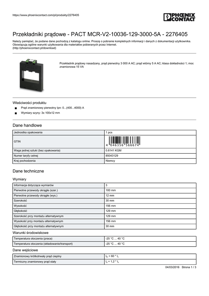 Przekładniki prądowe - PACT MCR-V2-10036-129-3000