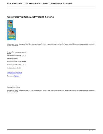 Dla m?odzie?y : Ci rewelacyjni Grecy. Strrraszna historia Ci rewelacyjni Grecy. Strrraszna historia Historyczny horror dla wybra?ców! Czy chcesz wiedzie?... Który z greckich bogów po?era? w?asne dzieci? Dlaczego lekarze zjadali woskowin? z ucha pacjenta? Ocena: Nie ma jeszcze oceny Cena Cena netto po rabacie: 4,41 € Cena po rabacie Cena sprzeda?y brutto: 4,81 € Cena sprzeda?y netto: 4,41 € Kwota podatku: 0,40 € Zadaj pytanie o produkt Producent: Egmont Szczegó?y produktu Historyczny horror dla wybra?ców! Czy chcesz wiedzie?... Który z greckich bogów po?era? w?asne dzieci? Dlaczego lekarze zjadali woskowin? z ucha pacjenta? 1 / 1 Powered by TCPDF (www.tcpdf.org)