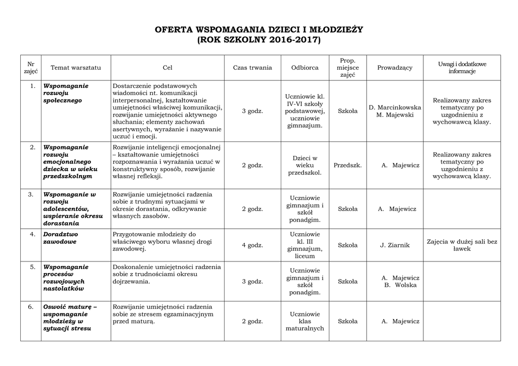 oferta wspomagania dzieci i młodzieży (rok szkolny 2016