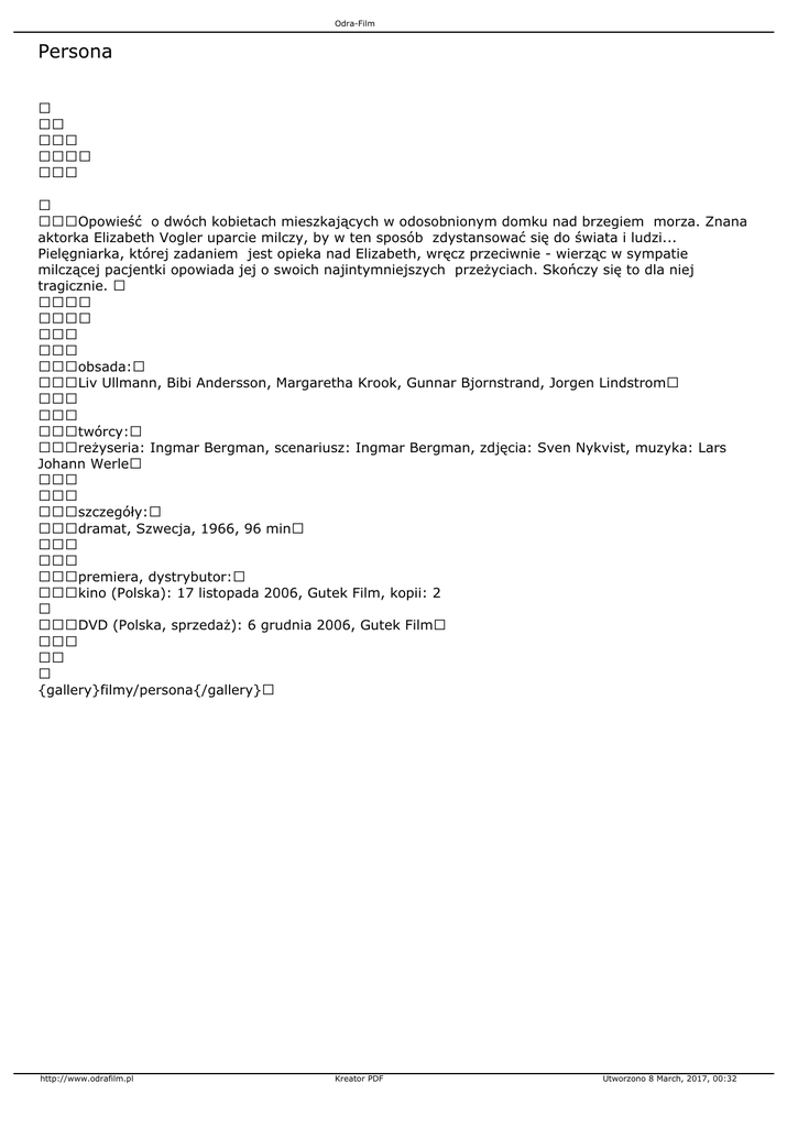 reżyseria: Ingmar Bergman, scenariusz: Ingmar Bergman, zdjęcia: Sven Nykvist, muzyka: Lars