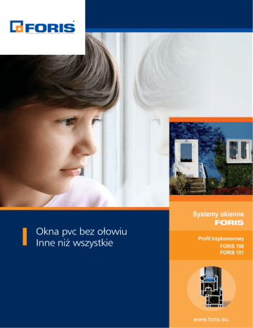 Systemy okienne Profil trzykomorowy FORIS 100 FORIS 101 Niemieckie systemy okienne FORIS 100 FORIS 101 FORIS 100 - profil trzykomorowy Klamka okienna FORIS Niezlicowane skrzydło oraz listwa przyszybowa z podcieciem nadaja charakterystyczny wyglad okna. Solidna konstrukcja - rama o wysokosci 68 mm i głebokosci zabudowy 60 mm - gwarantuje wysoka sztywnosć. Grubosć scianek zewnetrznych wynoszaca 3 mm pozwala na tworzenie duzych konstrukcji okiennych. FORIS 100 to dobra izolacja akustyczna i termiczna. Współczynnik izolacji termicznej profili okiennych Uf = 1,6 [W/(m2 x K)], natomiast współczynnik tłumienia Rw przy zastosowaniu standardowego pakietu szkła wynosi 30 dB. Ze wzgledu na tradycyjne wzornictwo oraz wytrzymała i niezawodna konstrukcje FORIS 100 jest atrakcyjny dla kazdego rodzaju budownictwa. FORIS 101 - profil trzykomorowy Listwa przyszybowa FORIS RAMA OKIENNA WYSOKOSĆ RAMY 68 mm SZEROKOSĆ RAMY 60 mm GRUBOSĆ SCIANKI ZEWNETRZNEJ 3 mm SKRZYDŁO OKIENNE SZYBA ZESPOLONA WZMOCNIENIE STALOWE GRUBOSĆ SCIANKI WEWNETRZNEJ 3 mm SKOSNY WRAB RAMY LISTWA PRZYSZYBOWA USZCZELKA PRZYSZYBOWA USZCZELKA ODBOJOWA Z mysla o inwestorach instytucjonalnych powstał FORIS 101, zaprojektowany w szczególnosci na potrzeby budynków uzytecznosci publicznej oraz osiedli mieszkaniowych. Nizsza zabudowa zapewnia wiekszy dopływ swiatła do pomieszczen a niezlicowane skrzydło nadaje klasyczny wyglad okna. Jednoczesnie trwała konstrukcja zapewnia dobre parametry uzytkowe. Okna pvc FORIS pozbawione saą toksycznych pierwiastków ołowiu i kadmu. Gwarantuja ochrone zdrowia ludzkiego i srodowiska naturalnego dzieki zastosowaniu technologii wapniowo-cynkowej. Potwierdza to Atest Higieniczny Panstwowego Zakładu Higieny. Okna pvc FORIS spełniaja normy Unii Europejskiej okreslone przez ekspertów w dyrektywie 67/588/EWG. Mieszkaj zdrowo Brak ołowiu pierwiastka wyjatkowo szkodliwego dla zdrowia, szczególnie ujemnie wpływajacego na rozwój dzieci. Ołów to kopalnie, huty, zakłady chemiczne, przetwórstwo i recykling - emisja oparów, dymów, odpady poprodukcyjne, scieki, kwasne deszcze. Równiez podczas procesu utylizacji, w spalarniach odpadów i w miejscach ich składowania moga powstać trujace substancje grozne dla naszego zdrowia i zycia. Stabilizacja wapniowo-cynkowa wykorzystywana do produkcji profili pvc FORIS jako jedyna wymieniona jest w Zielonej Ksiedze pvc. Bezołowiowe okna pvc FORIS przeznaczone sa dla budownictwa jednorodzinnego i wielorodzinnego, słuzby zdrowia, uzytecznosci publicznej i obiektów oswiatowo-wychowawczych. Energooszczędność Stolarka wykonana przy zastosowaniu wielokomorowych profili okiennych i drzwiowych rodziny FORIS gwarantuje znakomita izolacje termiczna. Zima skutecznie zatrzyma ciepło w domu, a latem ochroni wnetrze przed nadmiernym nagrzewaniem i zatrzyma w domu przyjemny chłód. Doskonała izolacja termiczna stolarki pvc FORIS przekłada sie na znaczne zredukowanie kosztów ogrzewania w okresie zimy i klimatyzacji pomieszczen w okresie upałów. Poprzez wymiane starych okien straty ciepła ulegna zmniejszeniu od 20 do 30 %, co przekłada sie na oszczednosci kilkuset złotych dla sredniej wielkosci mieszkania w sezonie grzewczym. Dyrektywa Unii Europejskiej Nr 2002/91/EC z 16.12.2002 w sprawie charakterystyki energetycznej budynków nakładajaca obowiazek uzyskiwania swiadectw energetycznych dla budynków nowo wznoszonych i juz istniejacych podkresla jak duza wage przykłada sie obecnie do izolacji termicznej wszystkich elementów budynku w tym stolarki okiennej. Projektujac okna i drzwi pvc FORIS jest mozliwe w pełni wykorzystanie mozliwosci konstrukcyjnych systemu bez najmniejszych obaw o izolacje termiczna tych elementów. Kolorowy zawrót głowy! Indywidualnosc w domu Kolorowe pomysły na własny dom Garbalinski Polska Sp z o.o. ul. Ostrowska 388 61-312 Poznan tel. +48 61 87 44 100 fax +48 61 87 44 299 e-mail: [email protected] Garbalinski GmbH Dresdner Str. 55 33330 Gütersloh tel. +49 5241 3304 0 fax +49 5241 3304 49 e-mail: [email protected] Okna FORIS inspiruja szerokimi mozliwosciami konstrukcyjnymi, nowoczesnym wzornictwem i bogata kolorystyka. Mozesz wybrać dowolny kształt i kolor, zgodnie z indywidualnym wyobrazeniem o Twoim domu. Kolorystyka okien FORIS jest bardzo urozmaicona, a wybór prawie nieograniczony dzieki mozliwosciom, jakie stwarza najnowsza technologia w zakresie okleinowania profili pvc. Okna FORIS moga być wykonane w wersji jedno - lub dwustronnie kolorowej. Szczególnie ciekawa jest propozycja wykonania okna w wersji jednokolorowej od strony wewnetrznej, umozliwiajaca indywidualne projektowanie kazdego pomieszczenia w domu. Okna FORIS wykonywane w dwustronnej wersji barw drewnopodobnych standardowo realizowane sa na brazowym korpusie, co doskonale podnosi walory estetyczne stolarki. Okna FORIS dostepne sa w 14 kolorach standardowych i szerokim wachlarzu kolorów uzupełniajacych. FORIS-PROS08