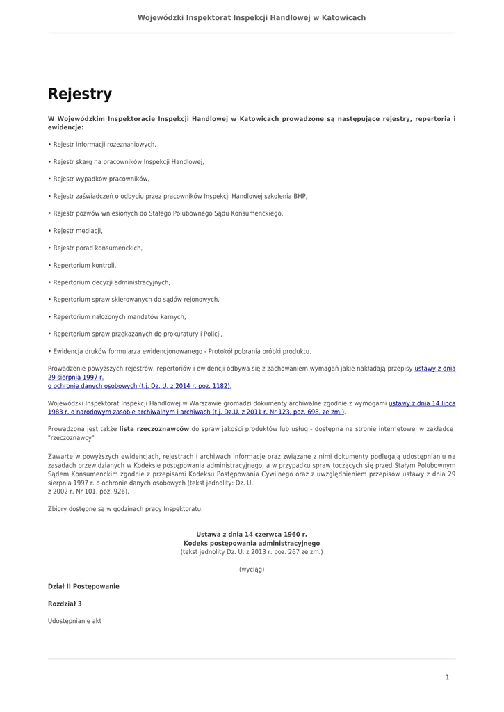 Rejestry - Wojewódzki Inspektorat Inspekcji Handlowej w Katowicach