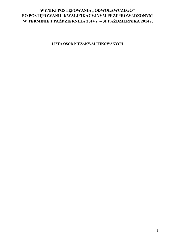 Wynik odwołań po postępowaniu kwalifikacyjnym 1