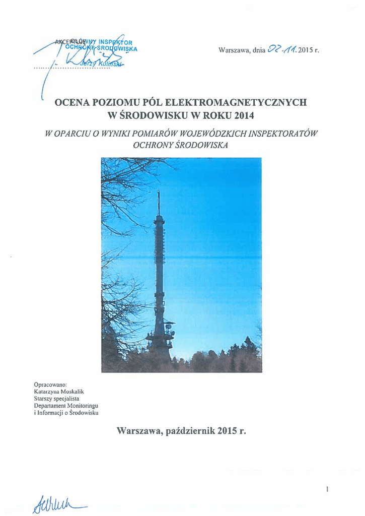 W opracowaniu przedstawiono krajową ocenę poziomów pól elektromagnetycznych