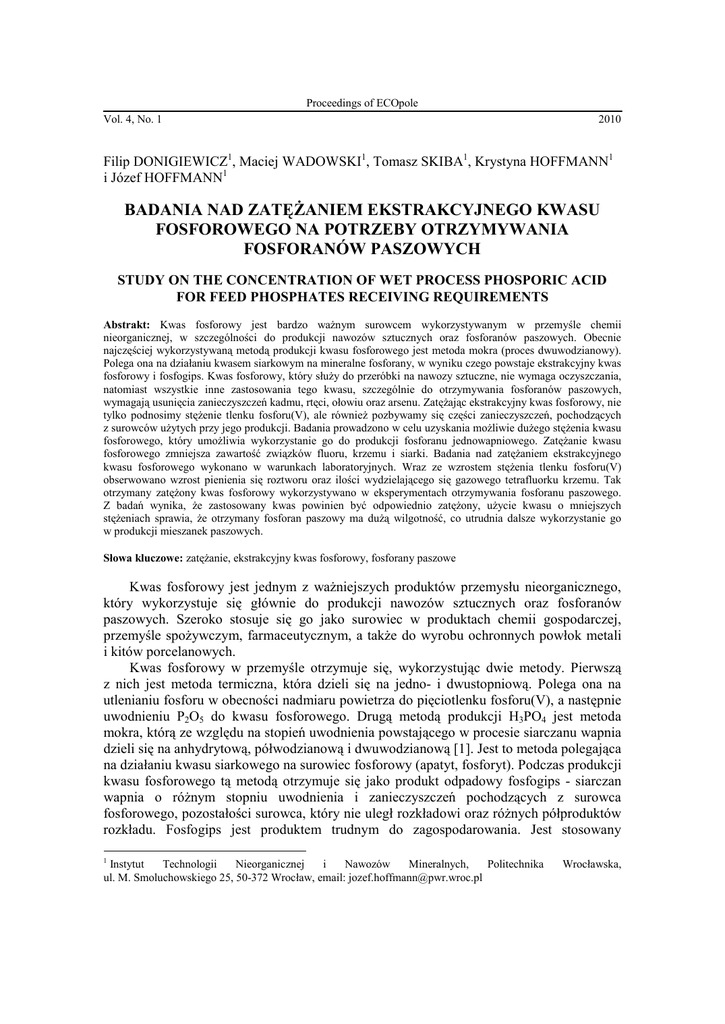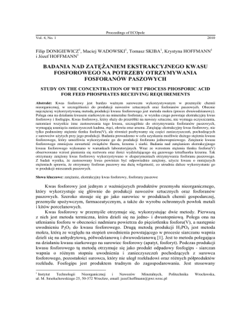 badania nad zatężaniem ekstrakcyjnego kwasu fosforowego na