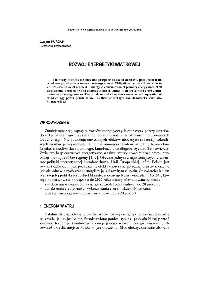 ROZWÓJ ENERGETYKI WIATROWEJ