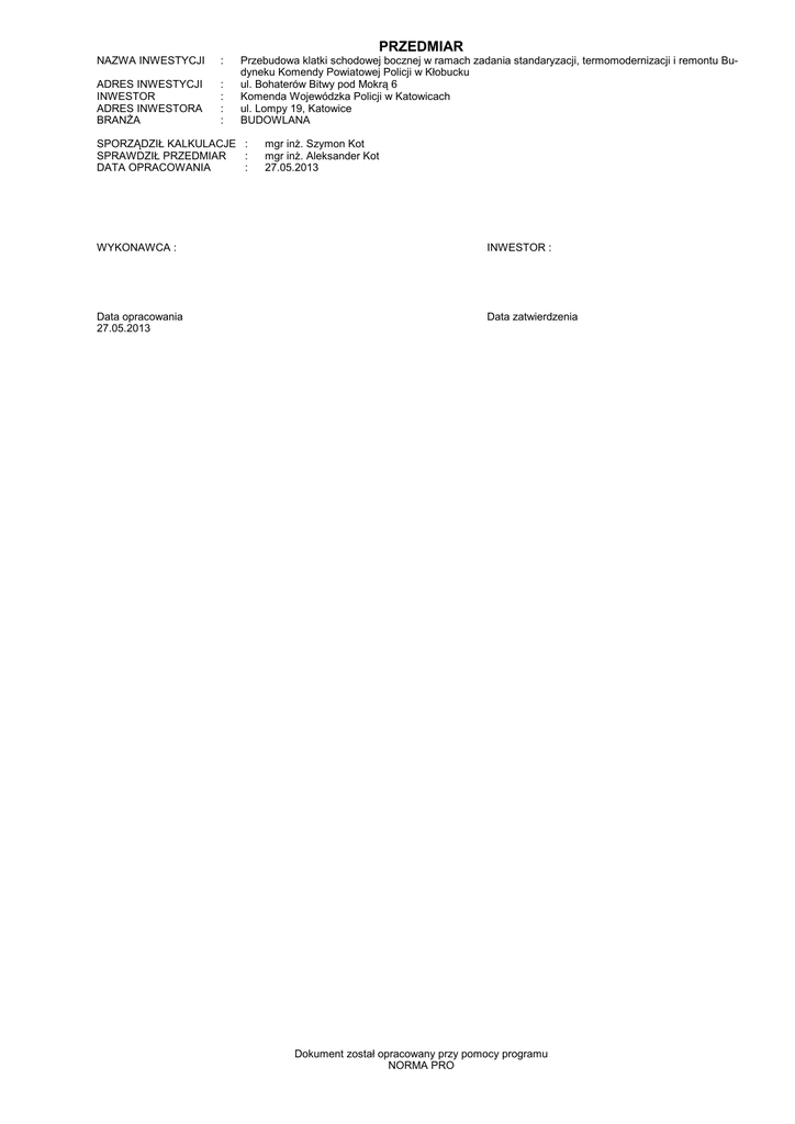 Przedmiar robót - Przebudowa klatki schodowej bocznej