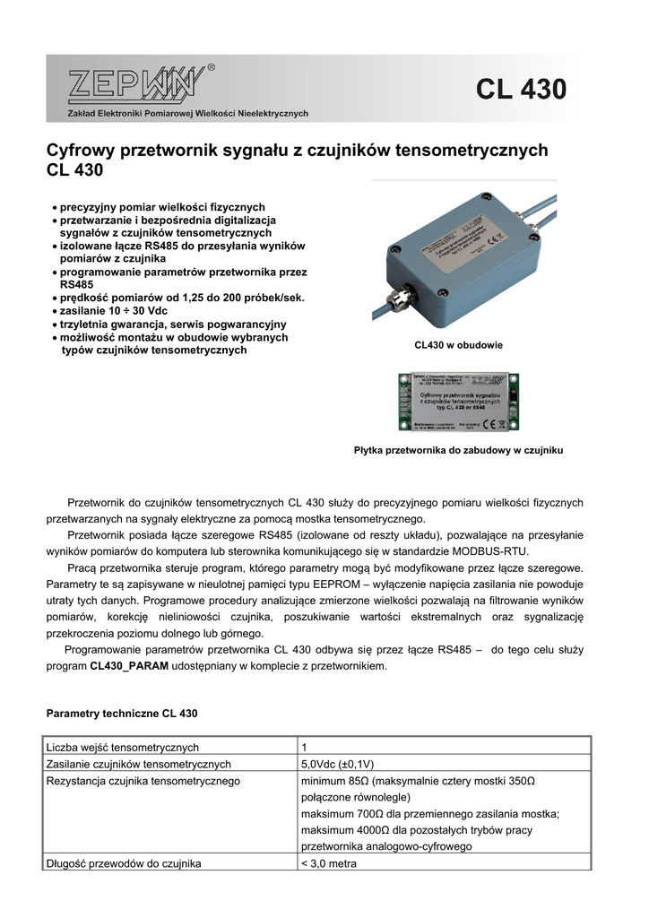 Cyfrowy przetwornik sygnału z czujników tensometrycznych CL 430