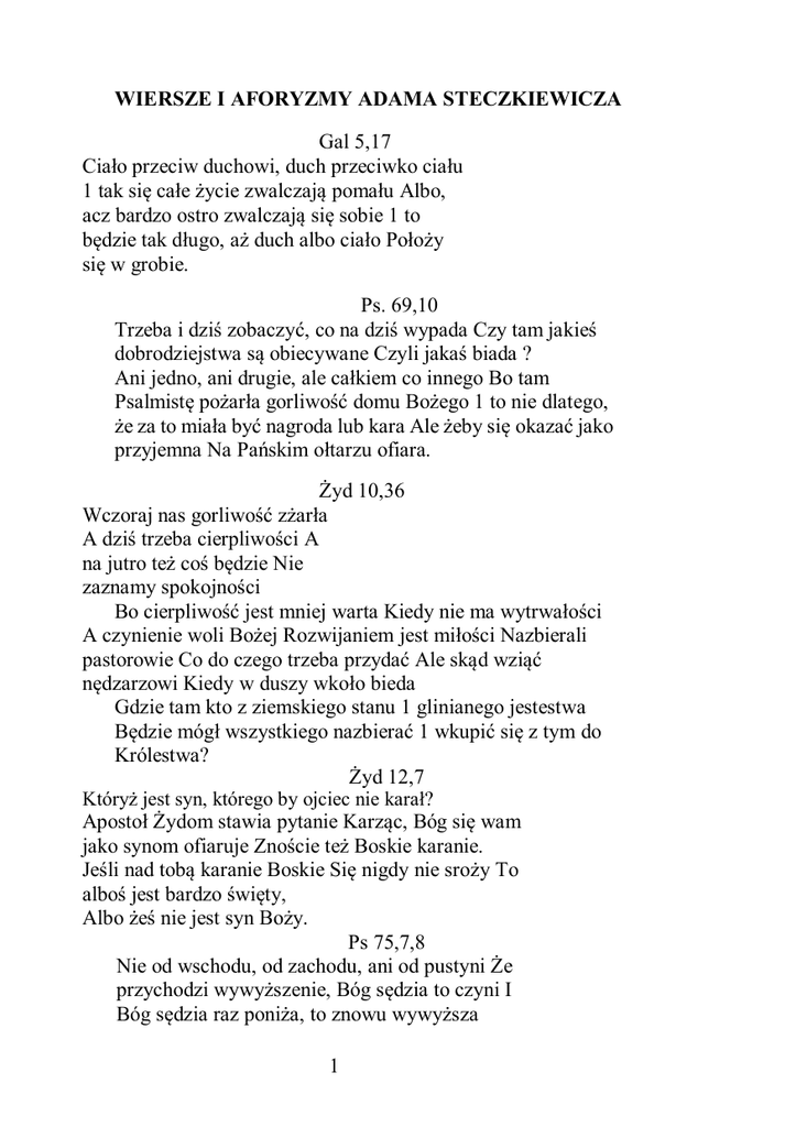 1 WIERSZE I AFORYZMY ADAMA STECZKIEWICZA Gal 5,17 Ciało