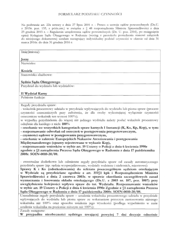 FORMULARZ PODZIAŁU CZYNNOŚCI Sędzia Sądu Okręgowego