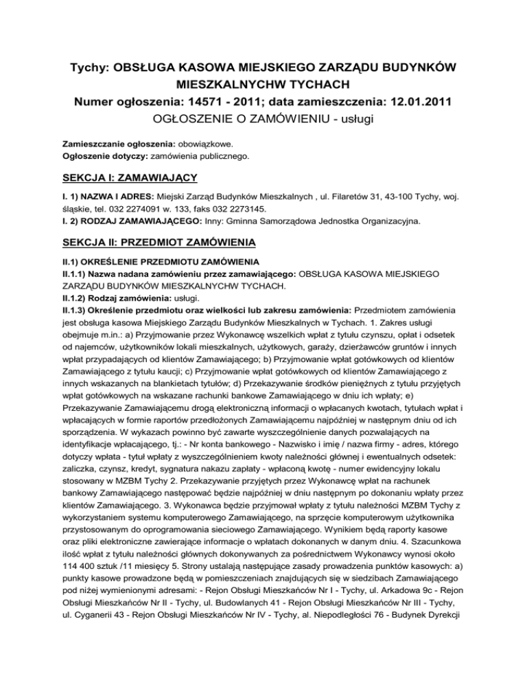 Tychy: OBSŁUGA KASOWA MIEJSKIEGO ZARZĄDU BUDYNKÓW