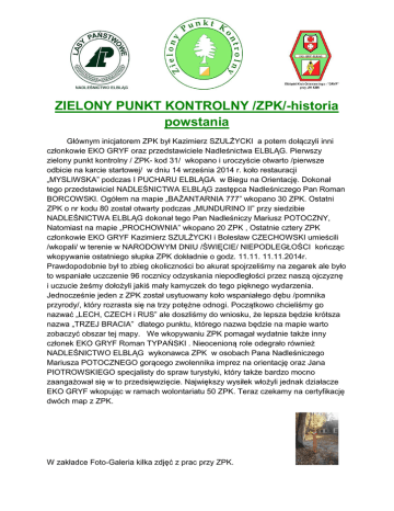 ZIELONY PUNKT KONTROLNY /ZPK/-historia powstania