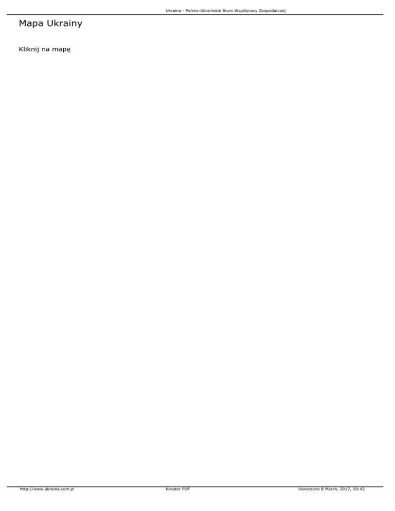 Ukraina - Polsko-Ukraińskie Biuro Współpracy Gospodarczej Mapa Ukrainy Kliknij na mapę http://www.ukraina.com.pl Kreator PDF Utworzono 8 March, 2017, 00:42