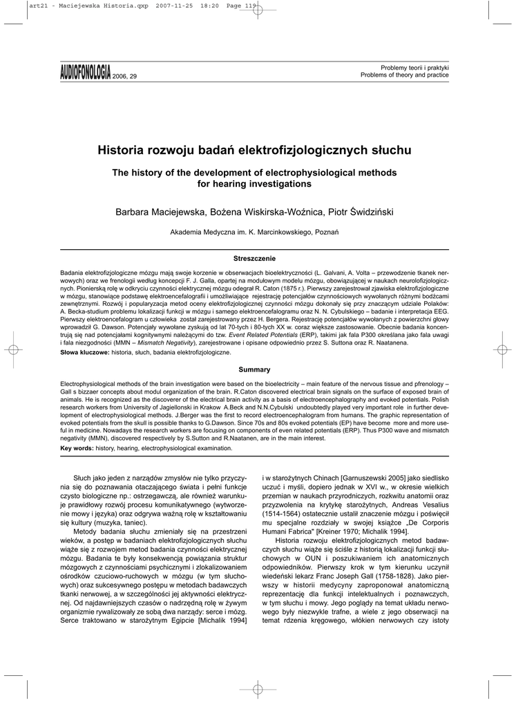 S³owa kluczowe: historia, s³uch, badania elektrofizjologiczne.