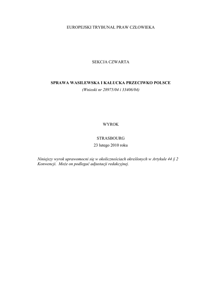 WYROK WASILEWSKA I KAŁUCKA PRZECIWKO POLSCE
