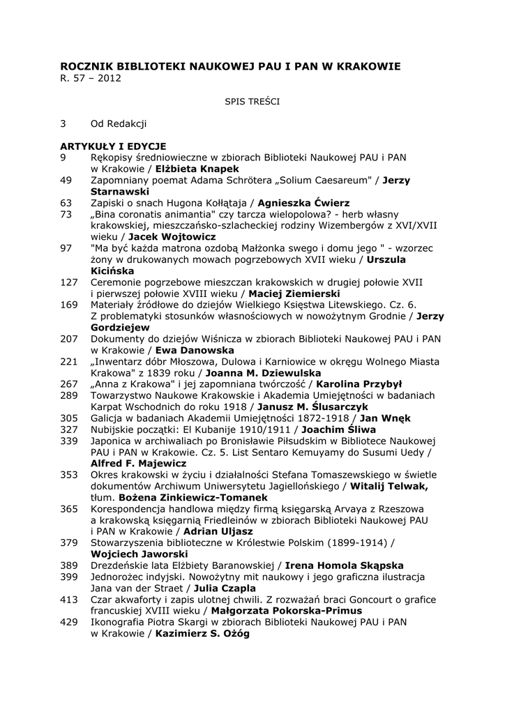 ROCZNIK BIBLIOTEKI NAUKOWEJ PAU I PAN W KRAKOWIE