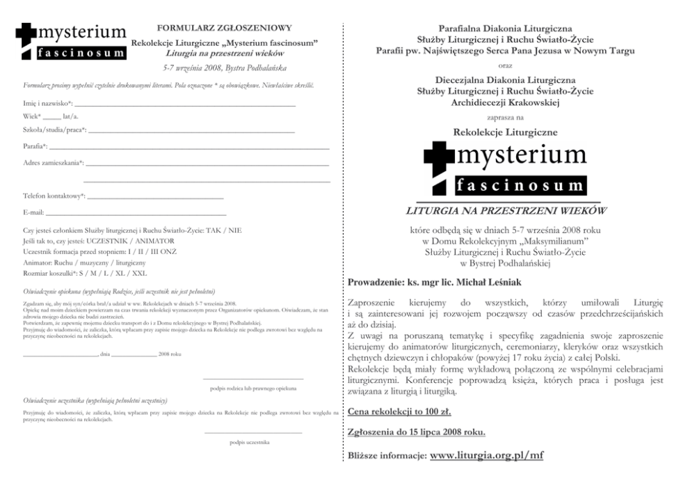 Prowadzenie: ks. mgr lic. Michał Le niak