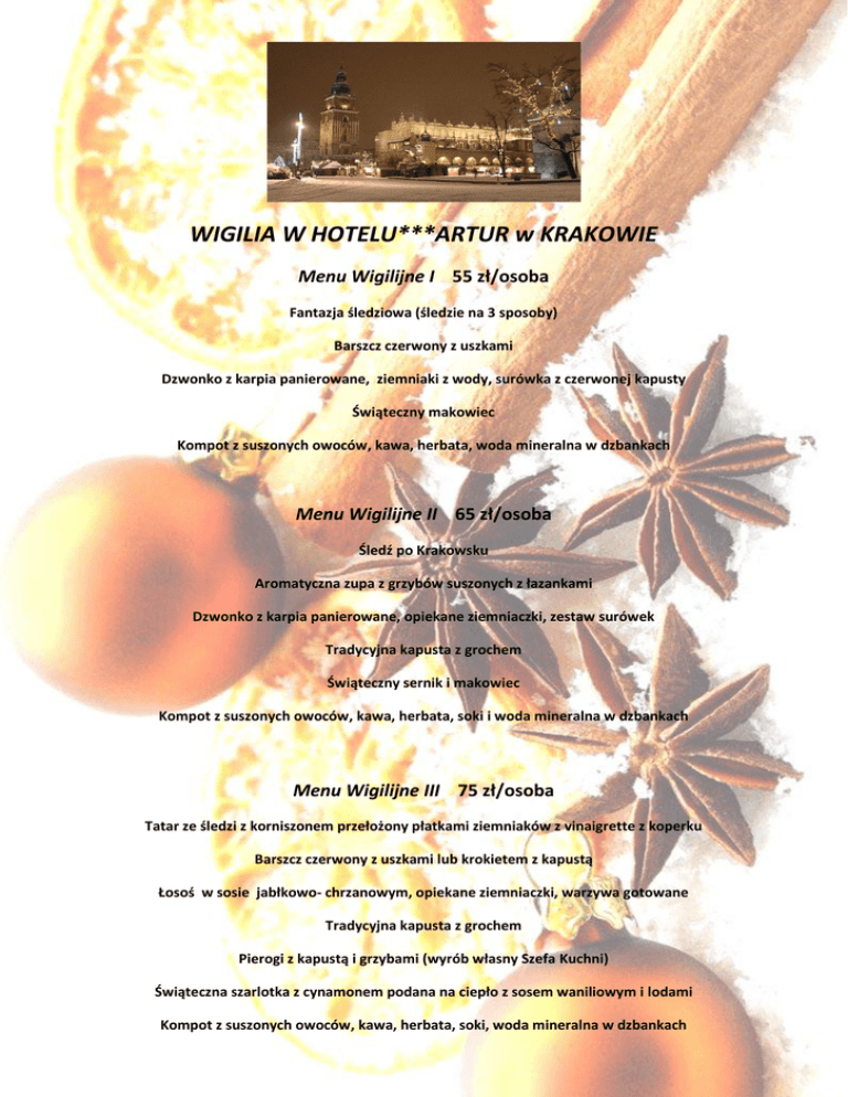 WIGILIA W HOTELU***ARTUR w KRAKOWIE